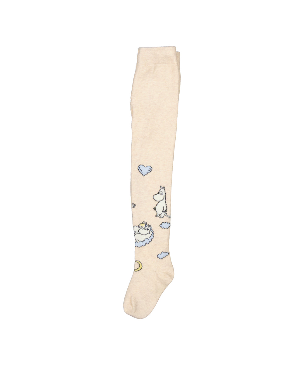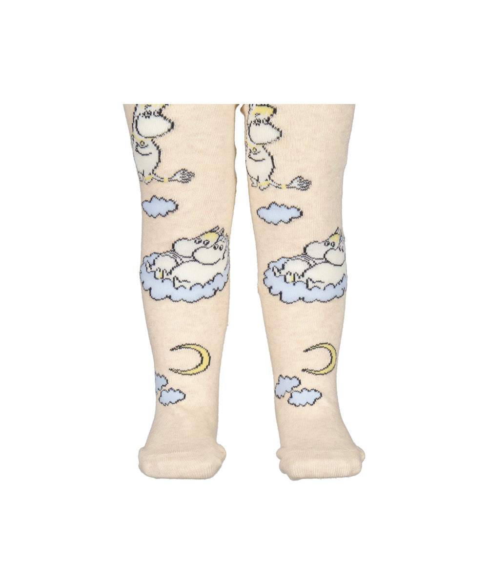 Cremefarvede børnestrømpebukser med Moomin figurer, måne og skyer