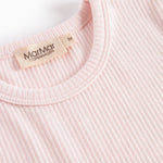 The T-shirt is ribbed, soft, holds its shape and color and has elastane in it, which makes it stretchy and comfortable to wear.