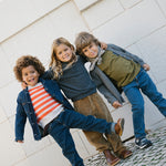 Classic jeans with 5 pockets and straight legs. The pants have a wide elastic waist that can be adjusted inside. Closes with hook and zipper up to size 9 years / closes with button and zipper from size 10 years