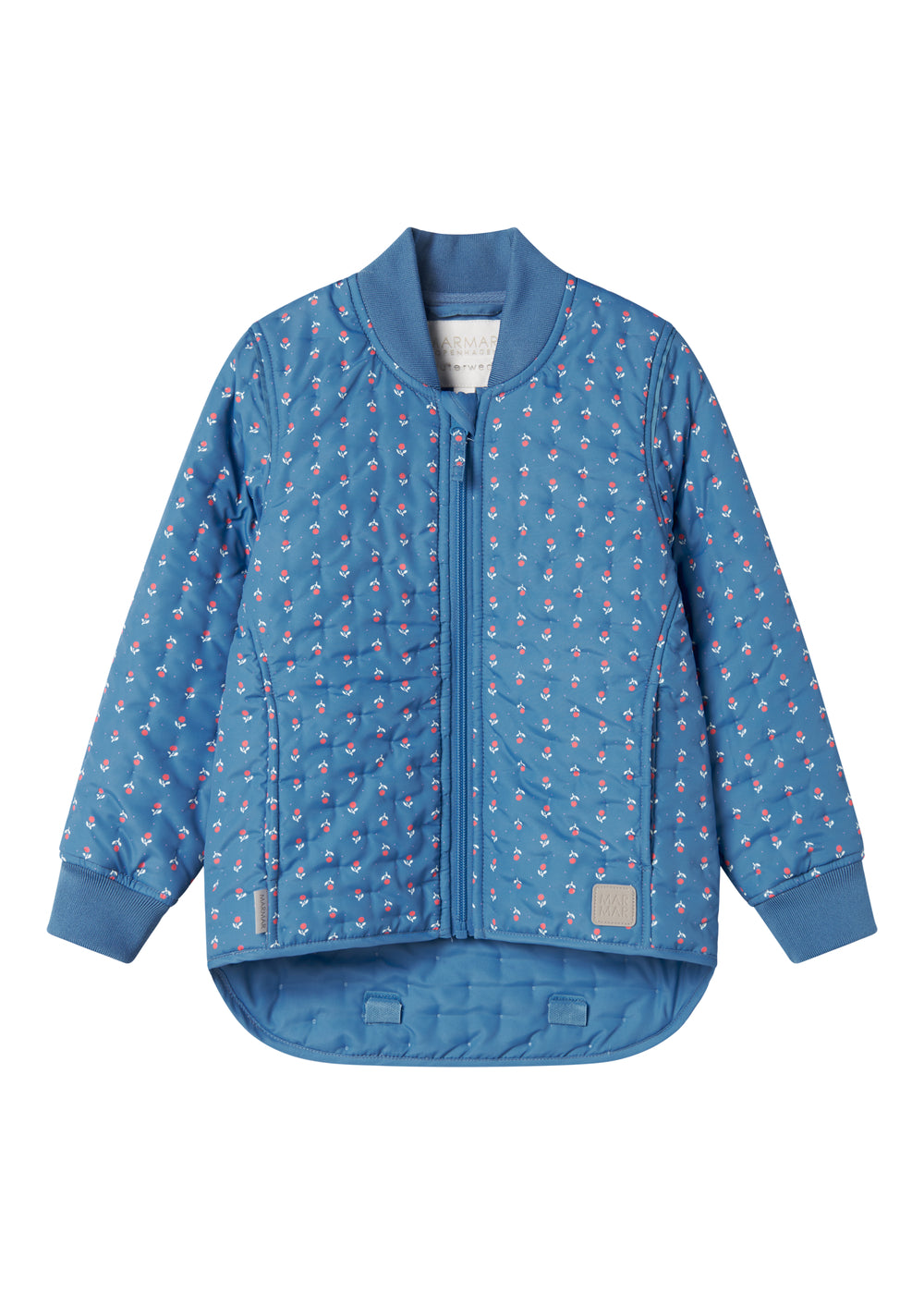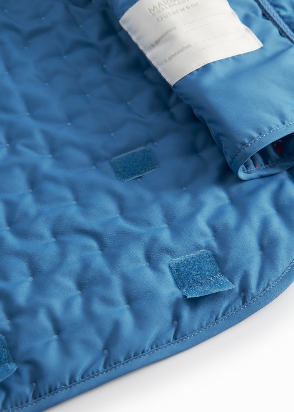 Thermal jacket for children with a slim fit and side pockets. The thermal jacket can be folded up at the back using small Velcro details if you don't want it to be longer. The thermal jacket closes with a zipper at the front and works perfectly as warm and practical transitional clothing.