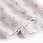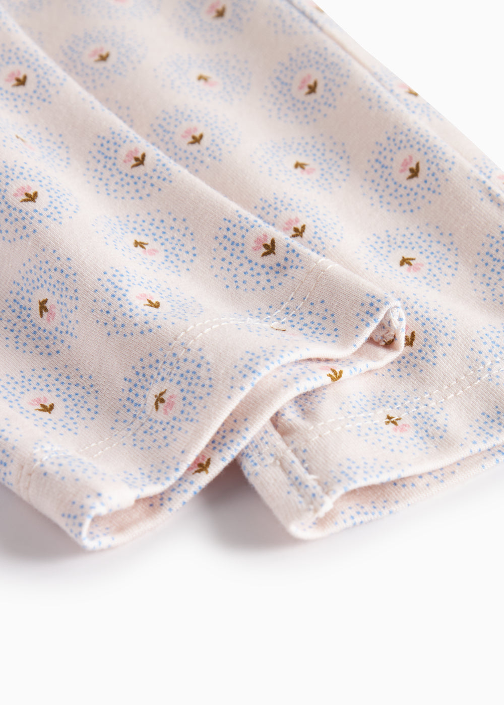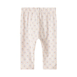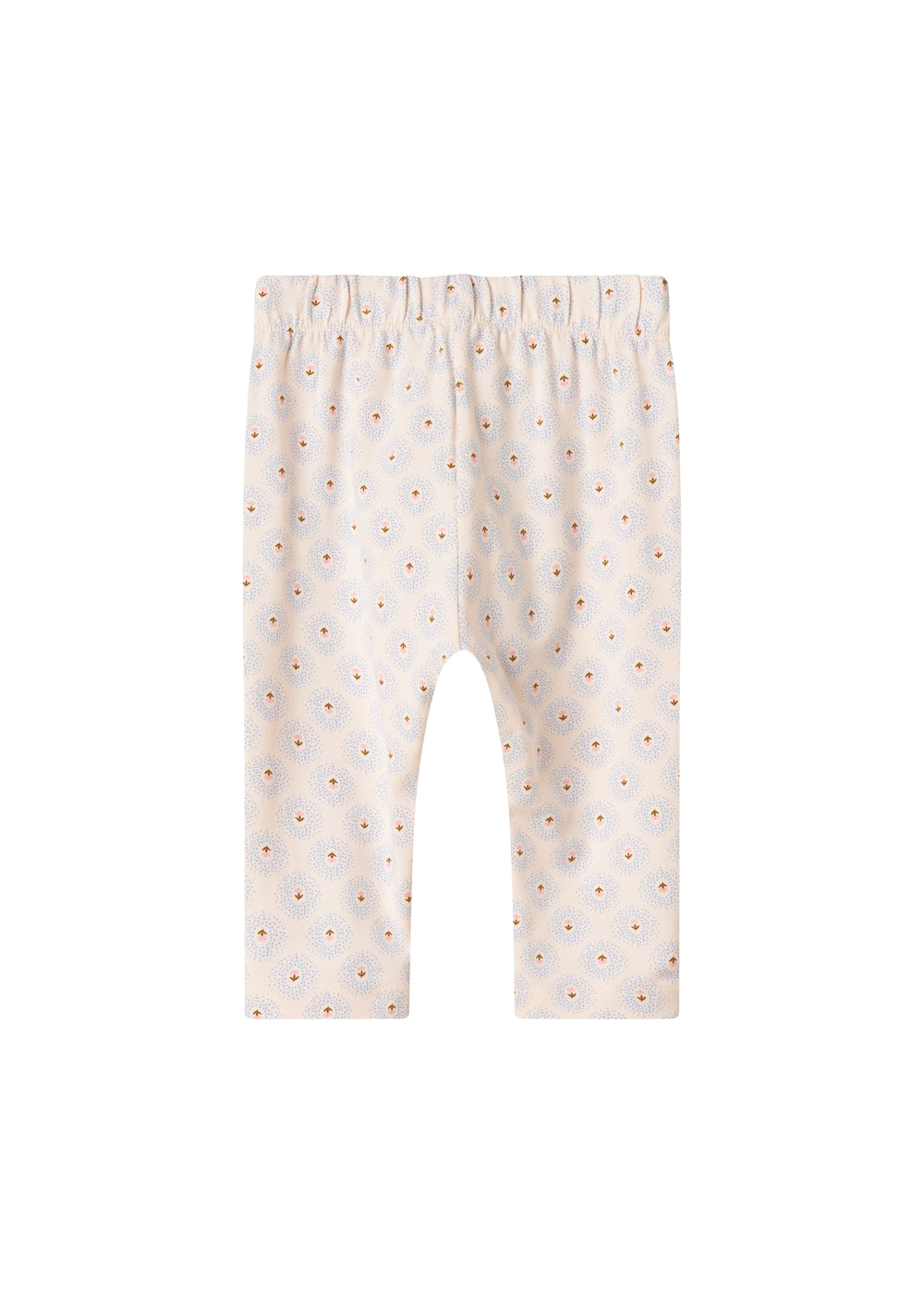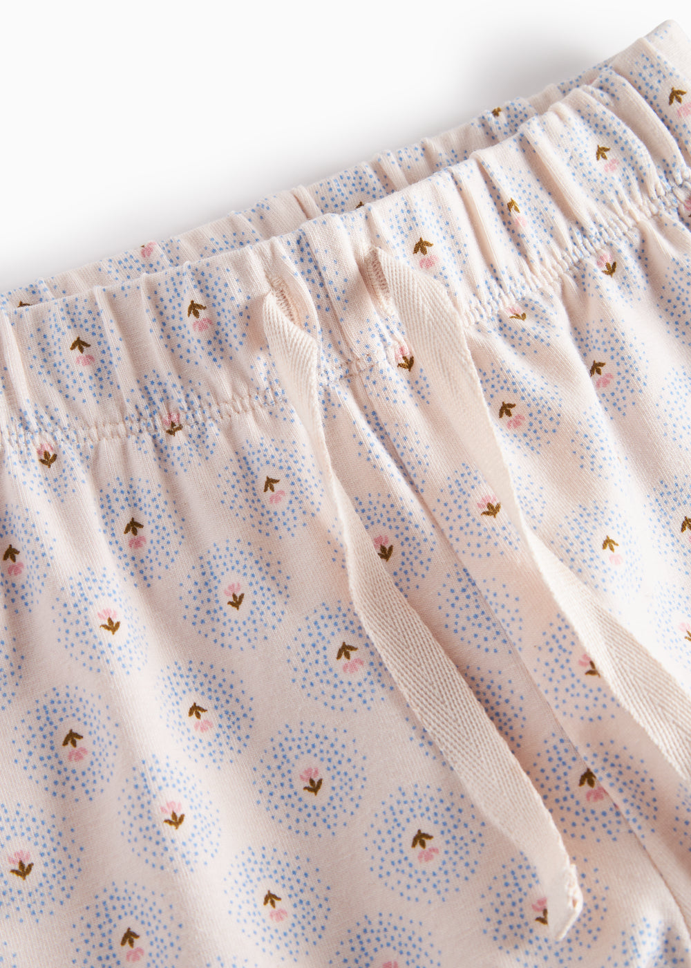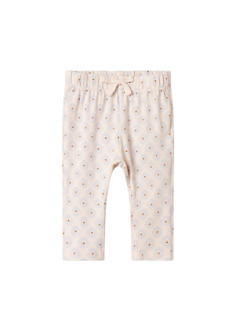 Comfortable baby pants with elastic and a decorative ribbon at the waist.