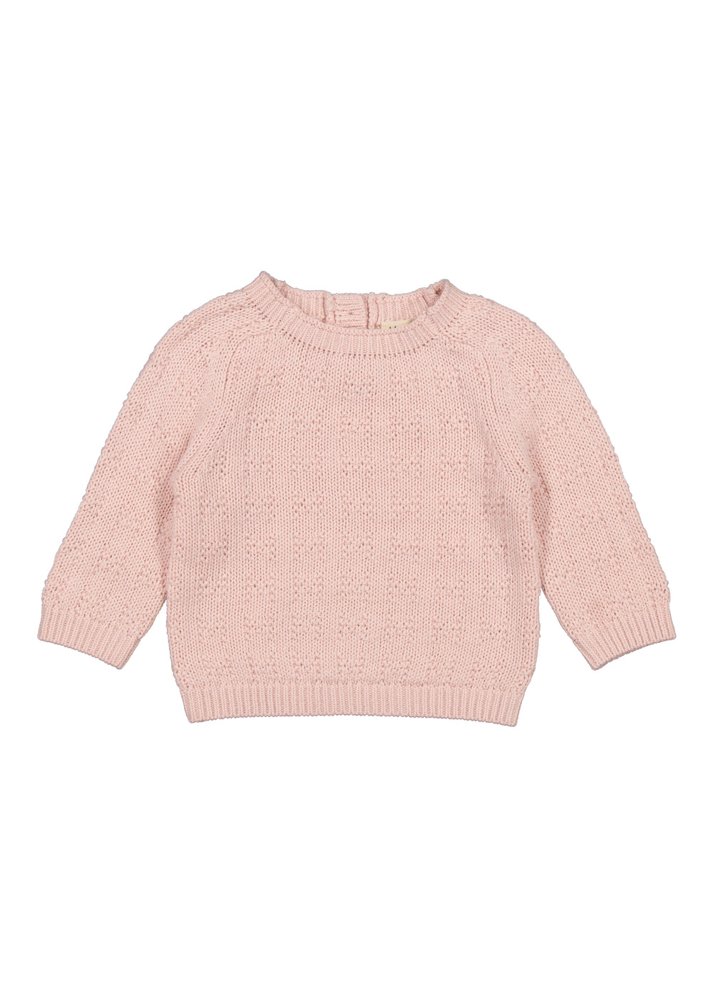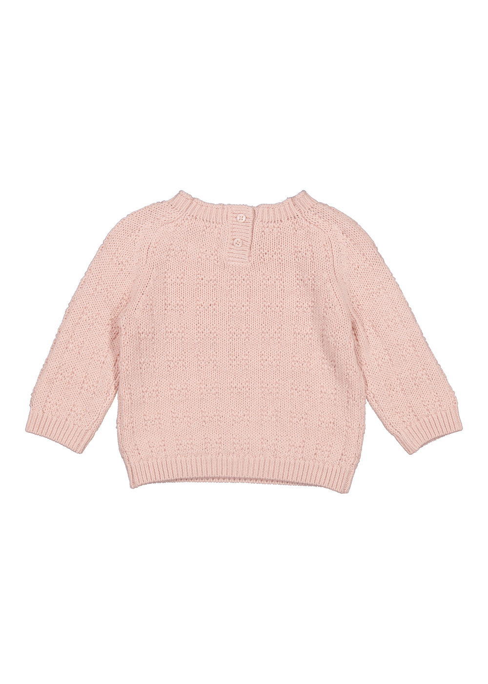 Knitted blouse for the little ones with raglan sleeves, patterned knit and button closure at the back, which makes it easy to take it on and off. The knitted blouse is soft, chunky and has a nice fall and is perfect for both spring and autumn.
