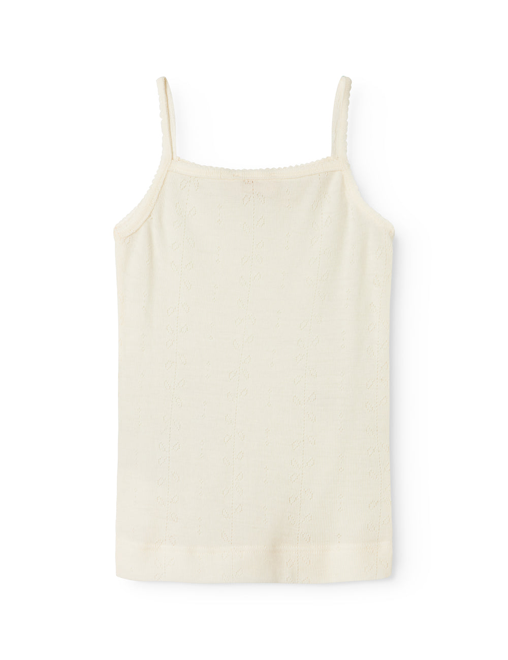 Strap Vest, Wool Pointelle Undershirt - Natural