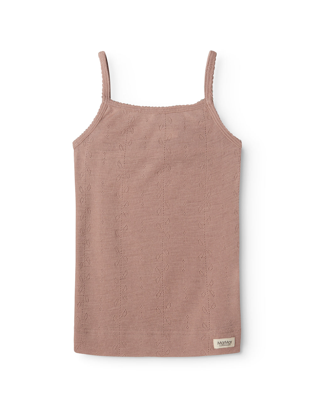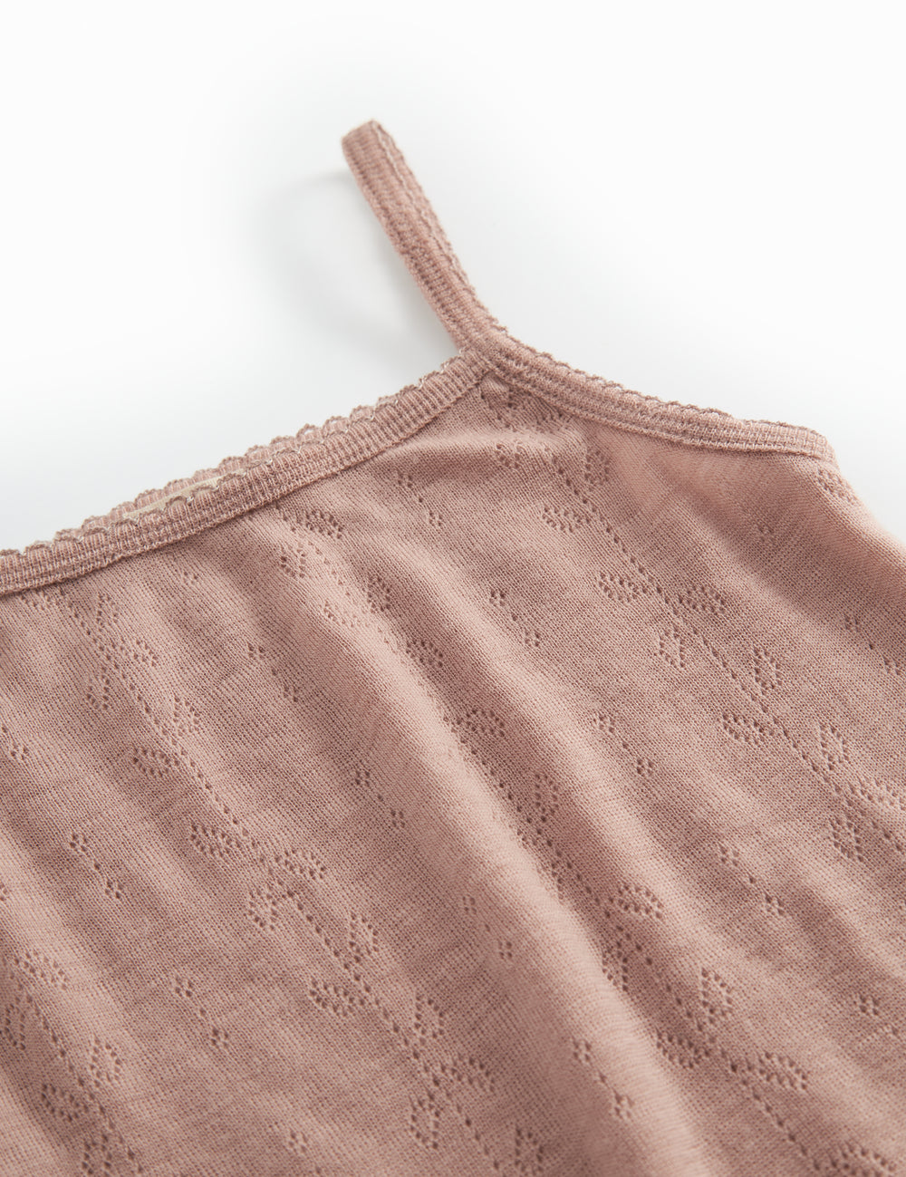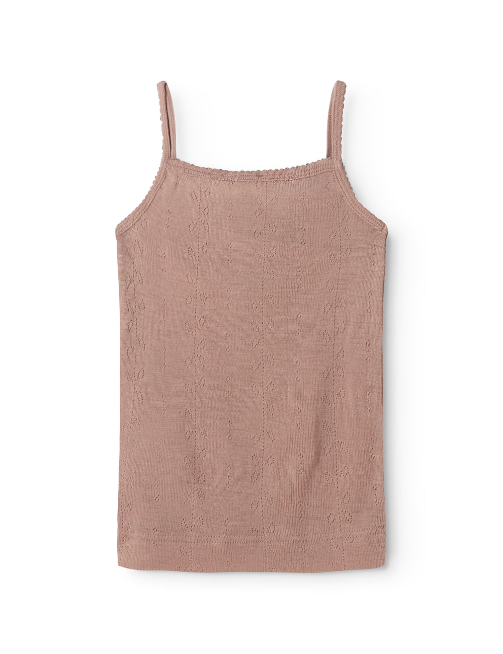 Strap Vest, Wool Pointelle Undershirt - Burnt Rose