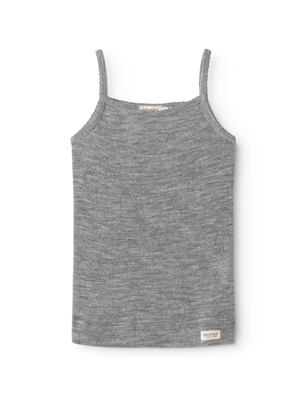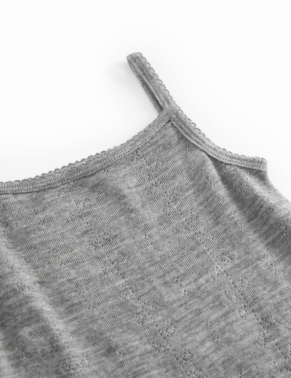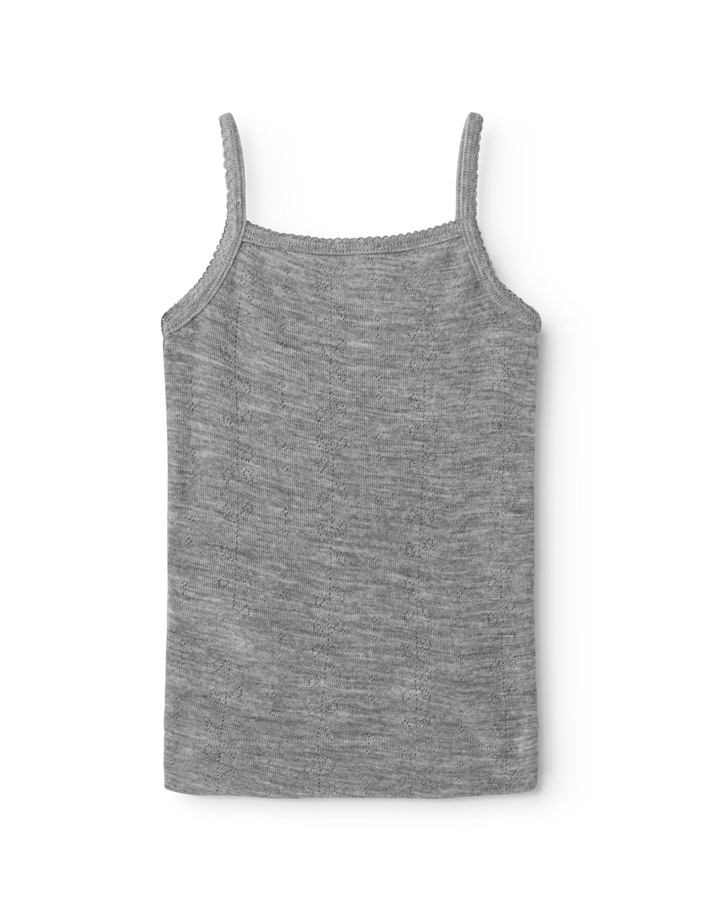 Strap Vest, Wool Pointelle Undershirt - Grey Melange