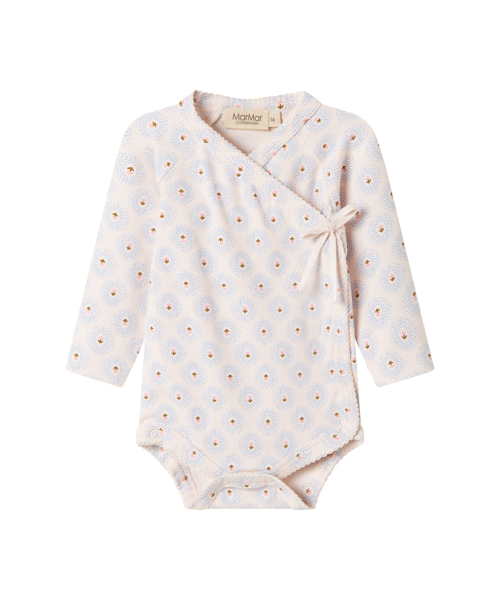 Lyseblå slå-om body til baby i merinould