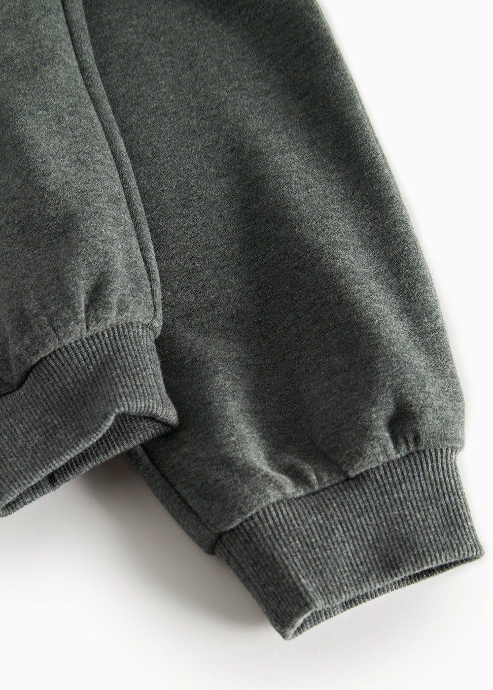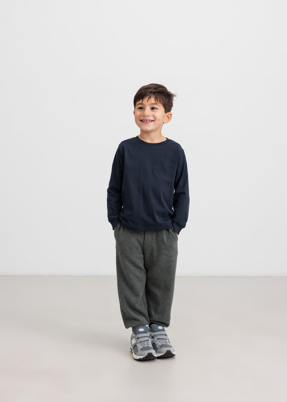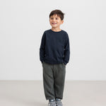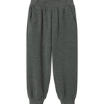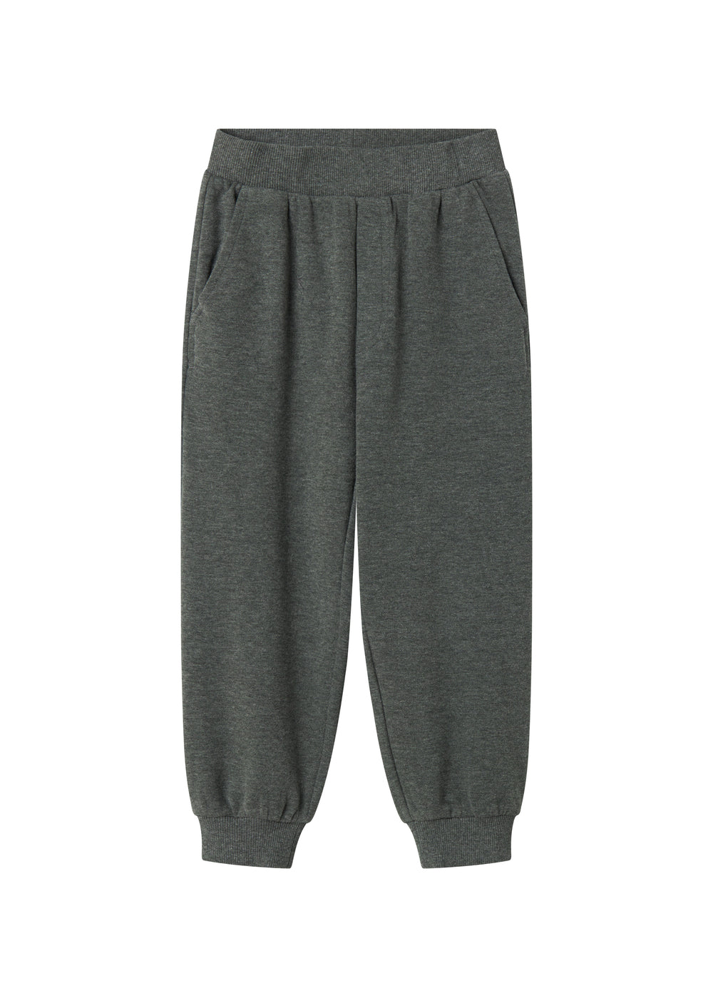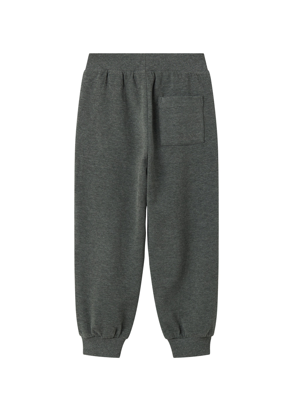 Sweatpants for children in a looser fit with elastic at the waist, two side pockets and one back pocket. The sweatpants are very soft and comfortable to wear.