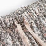 Comfortable pants with a beautiful leaf pattern, elastic and decorative ribbon at the waist. The pants are soft, stretchy and comfortable to wear.