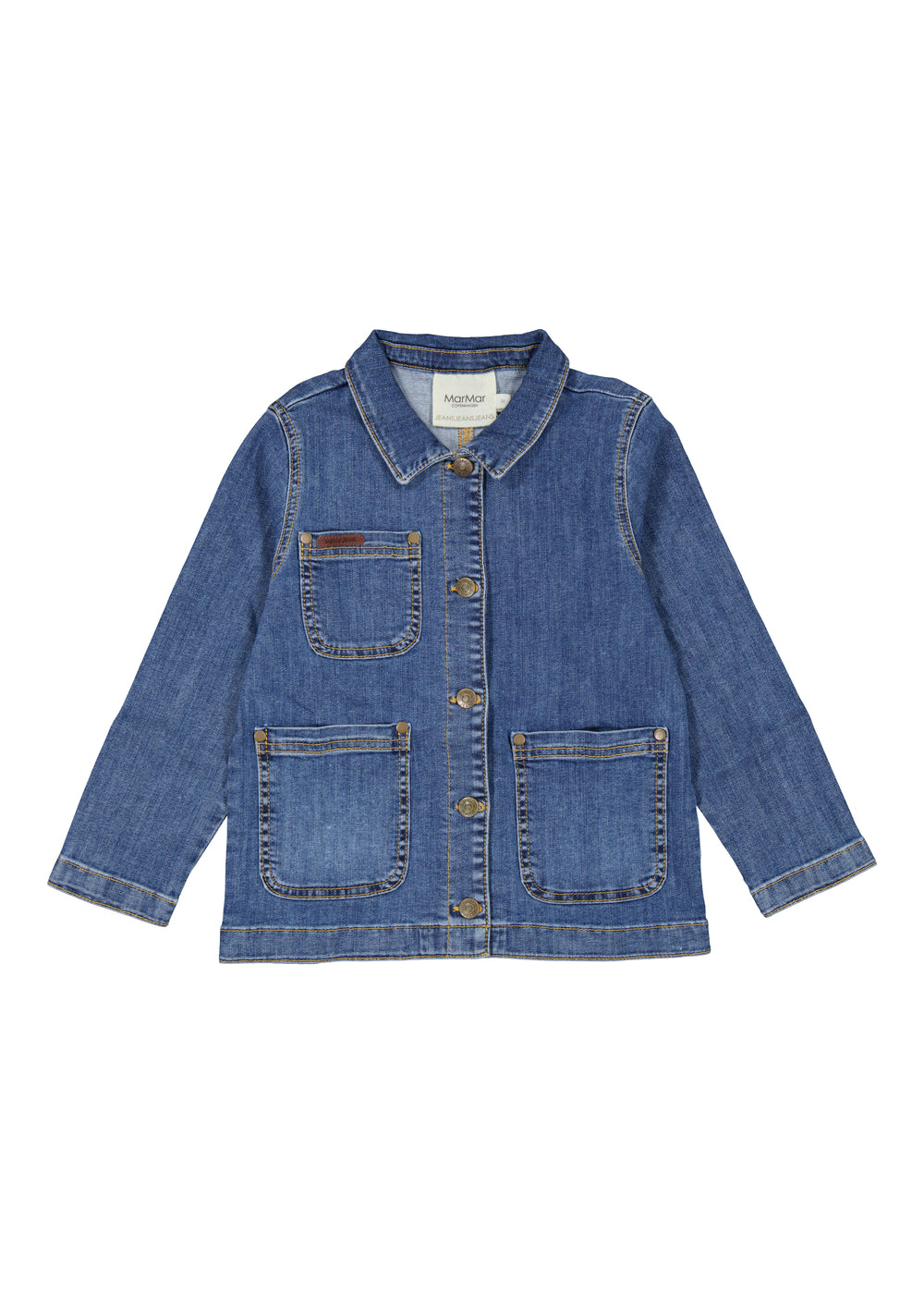 Denim jacket with collar and three large pockets in the front. The denim jacket closes with buttons in the front and is the perfect basic cowboy jacket for the wardrobe