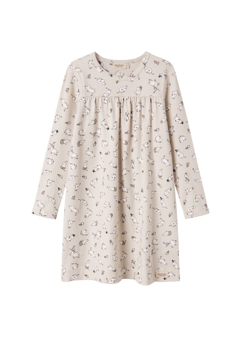 Long-sleeved nightgown for children with a nice Moomin print. The nightgown is soft, stretchy and comfortable to wear.