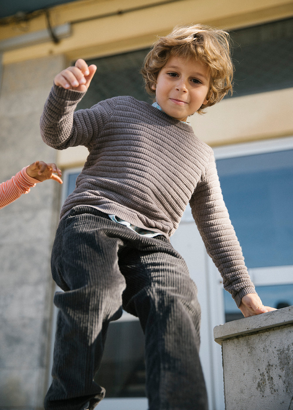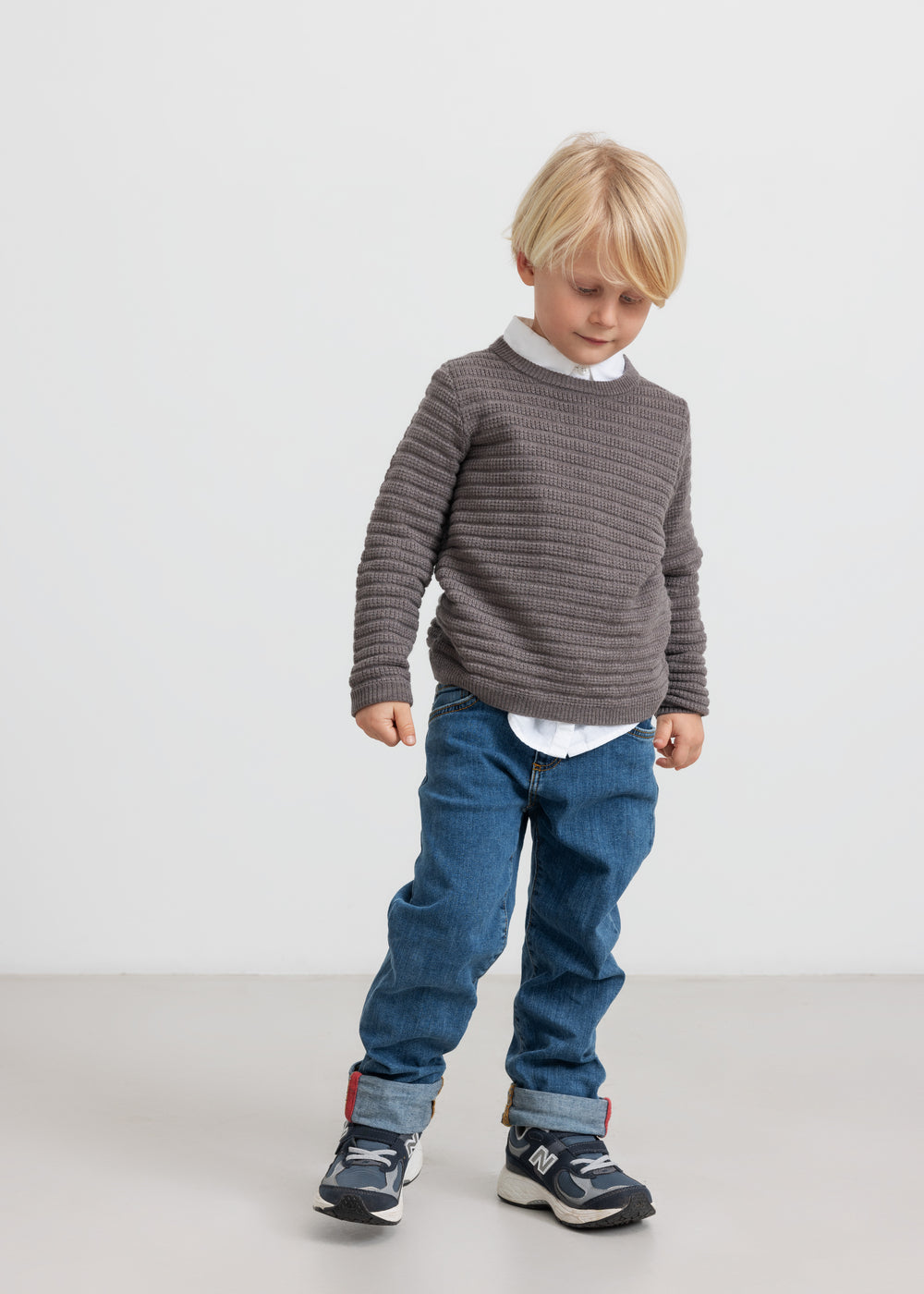 Simple and lovely knitted sweater for children in merino wool. The sweater is warm, soft and comfortable to wear.