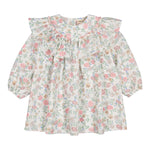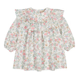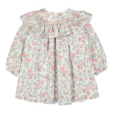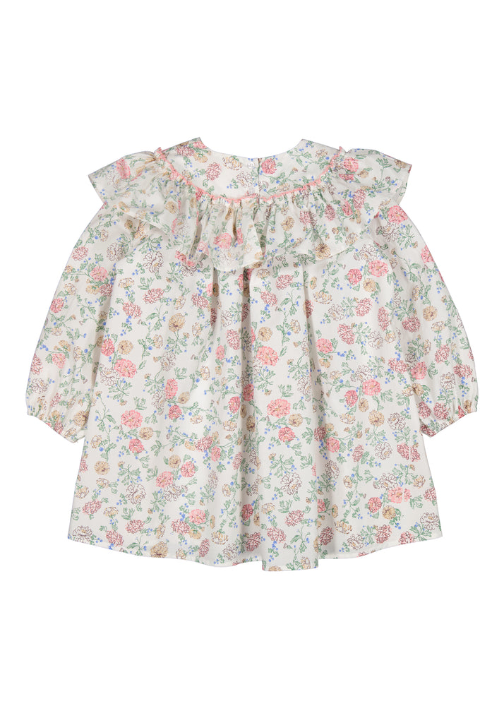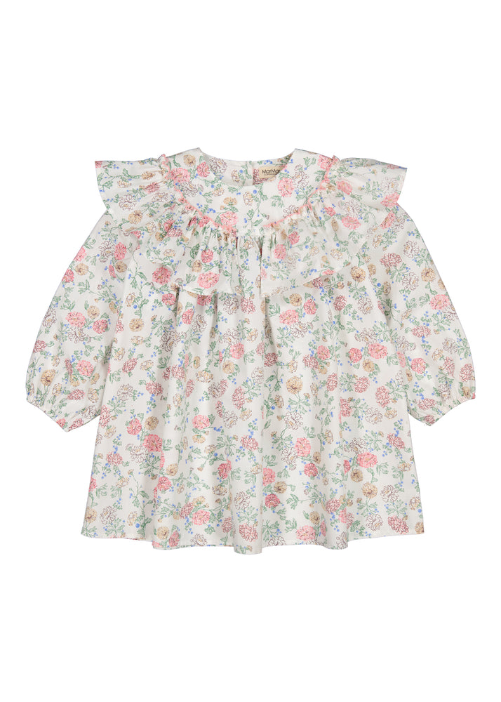 Comfortable long-sleeved dress with a good fit. The dress has a nice collar that goes all the way around. The dress closes with buttons at the back and the length goes above the knees. The dress is in a light and crispy quality