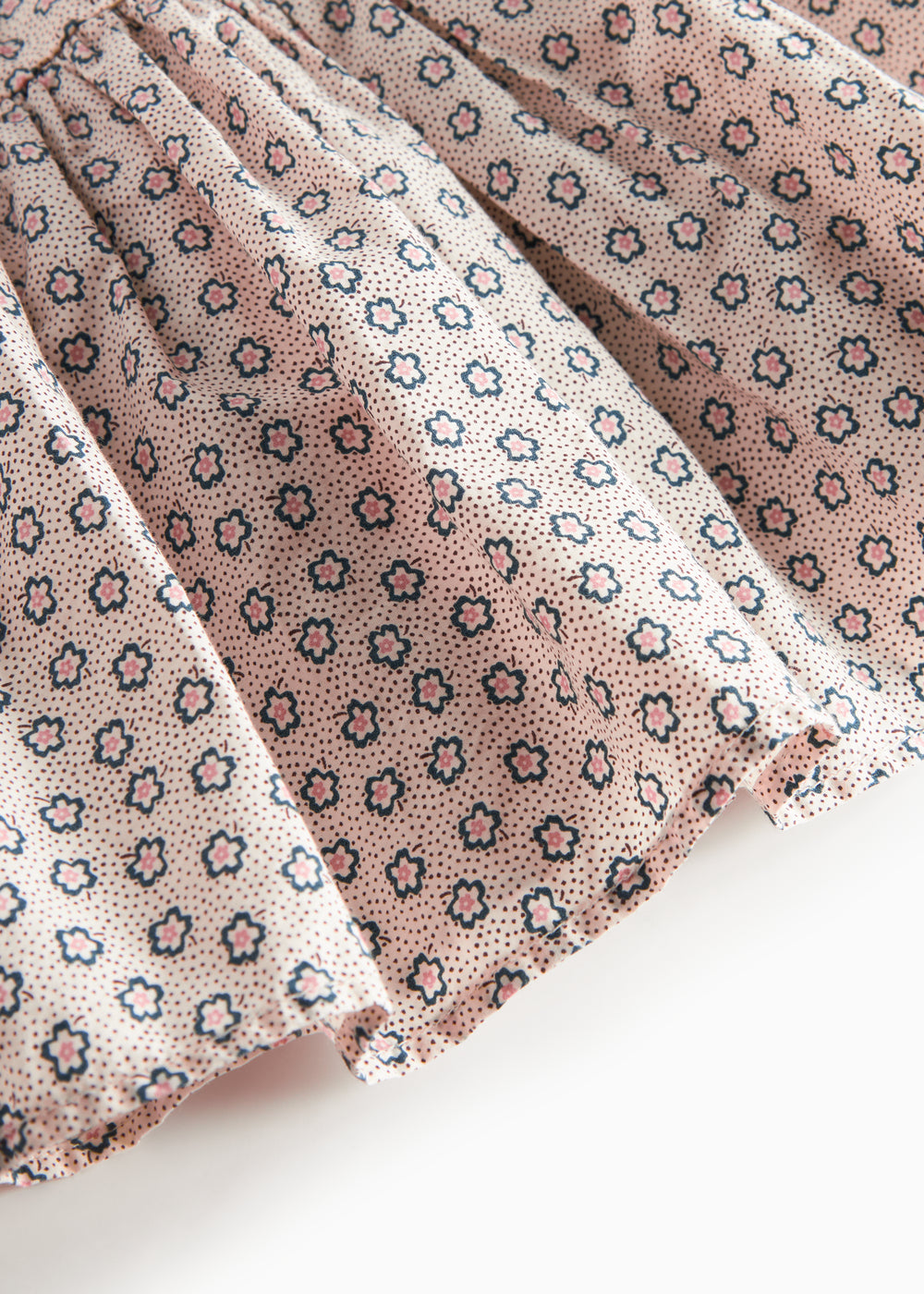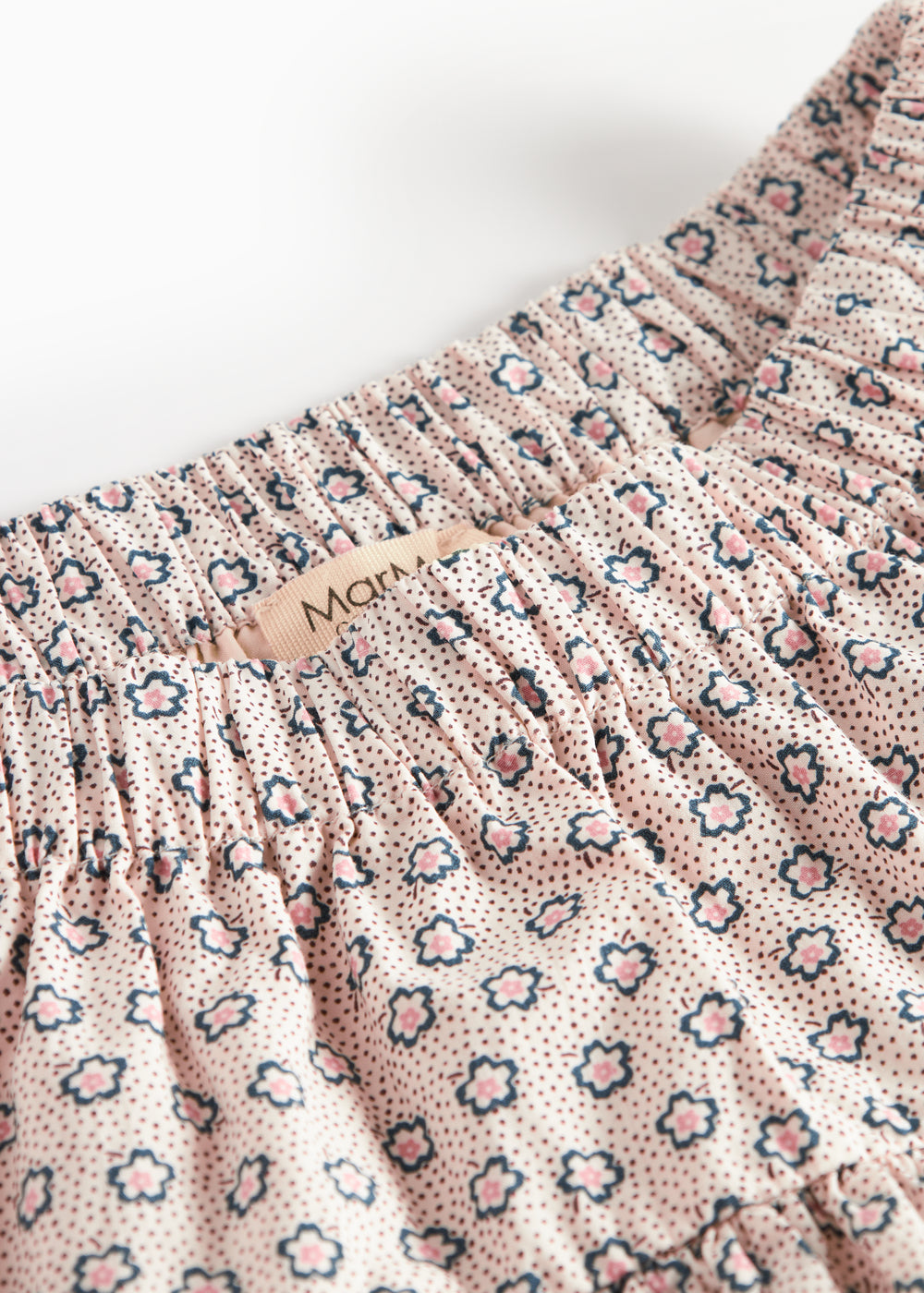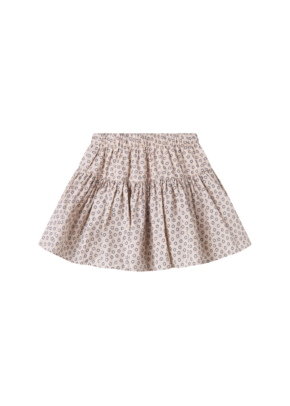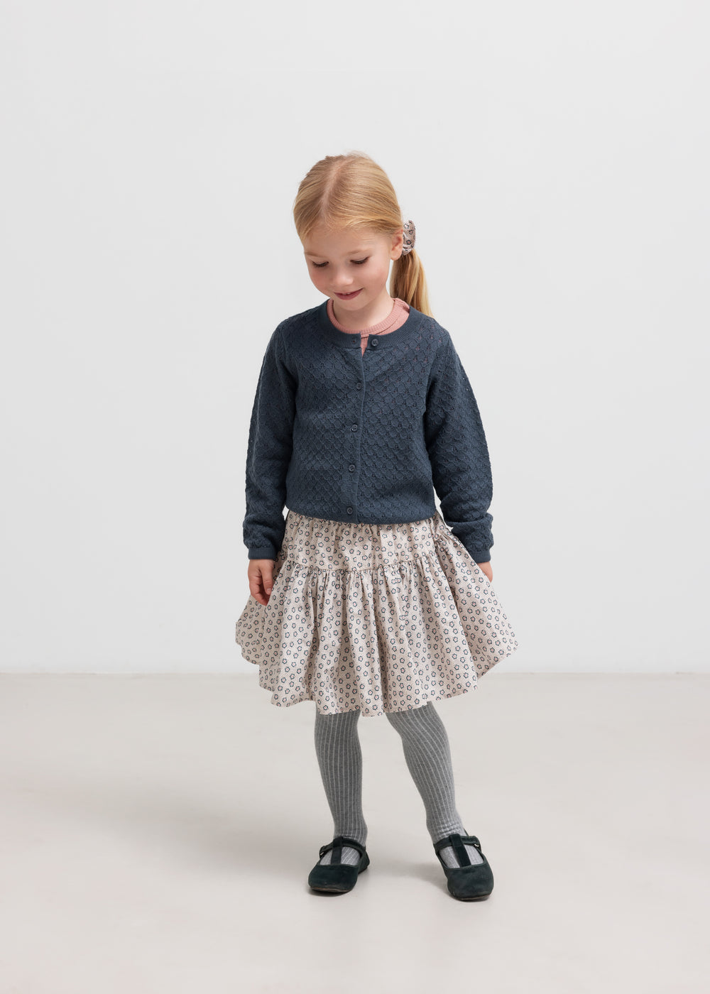 Skirt for children with a wide fit and a delicate hand-drawn floral print. The skirt has an elastic waist and a yoke that creates a nice shape. The length of the skirt goes above the knee and is both comfortable, light and airy to wear.