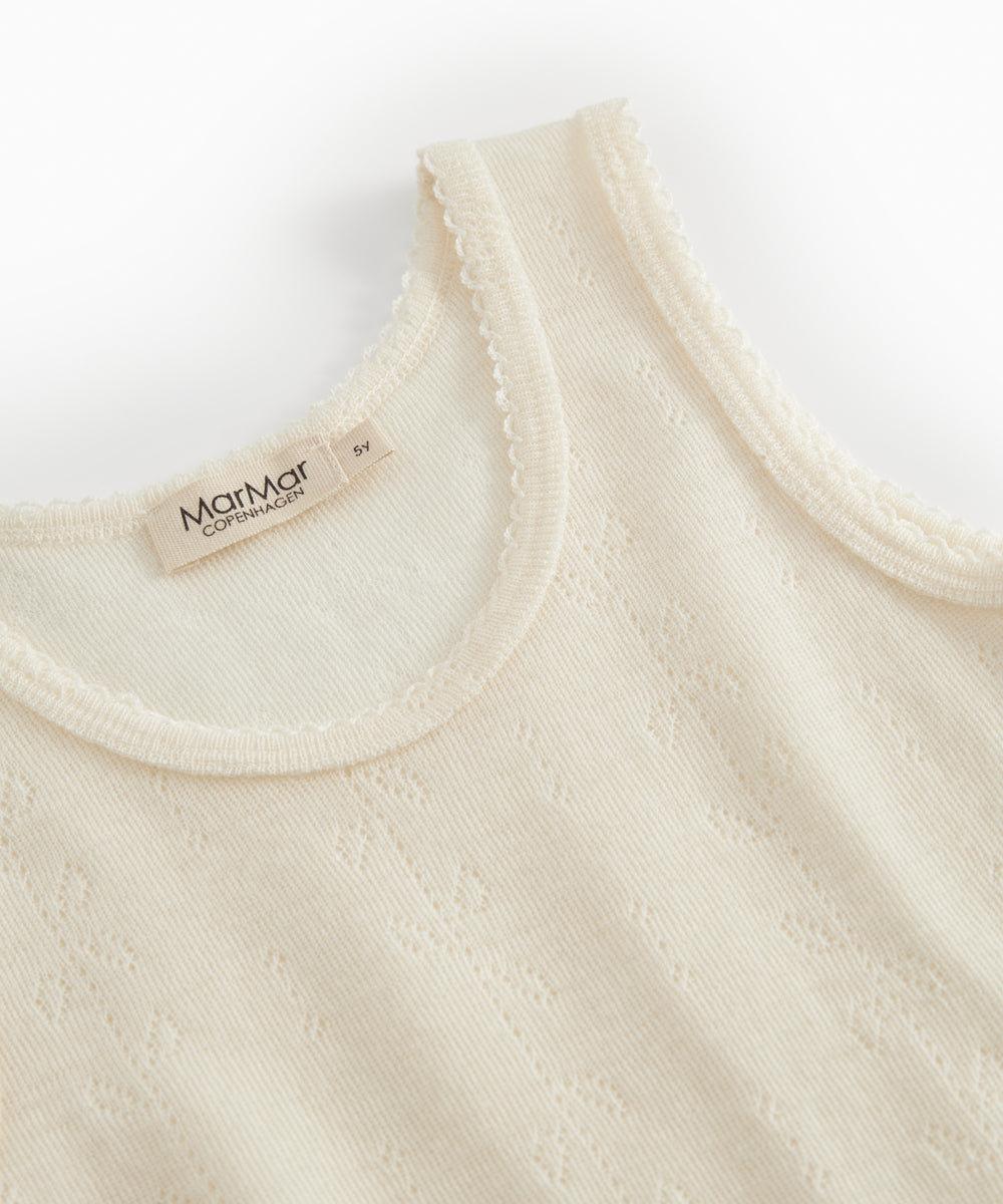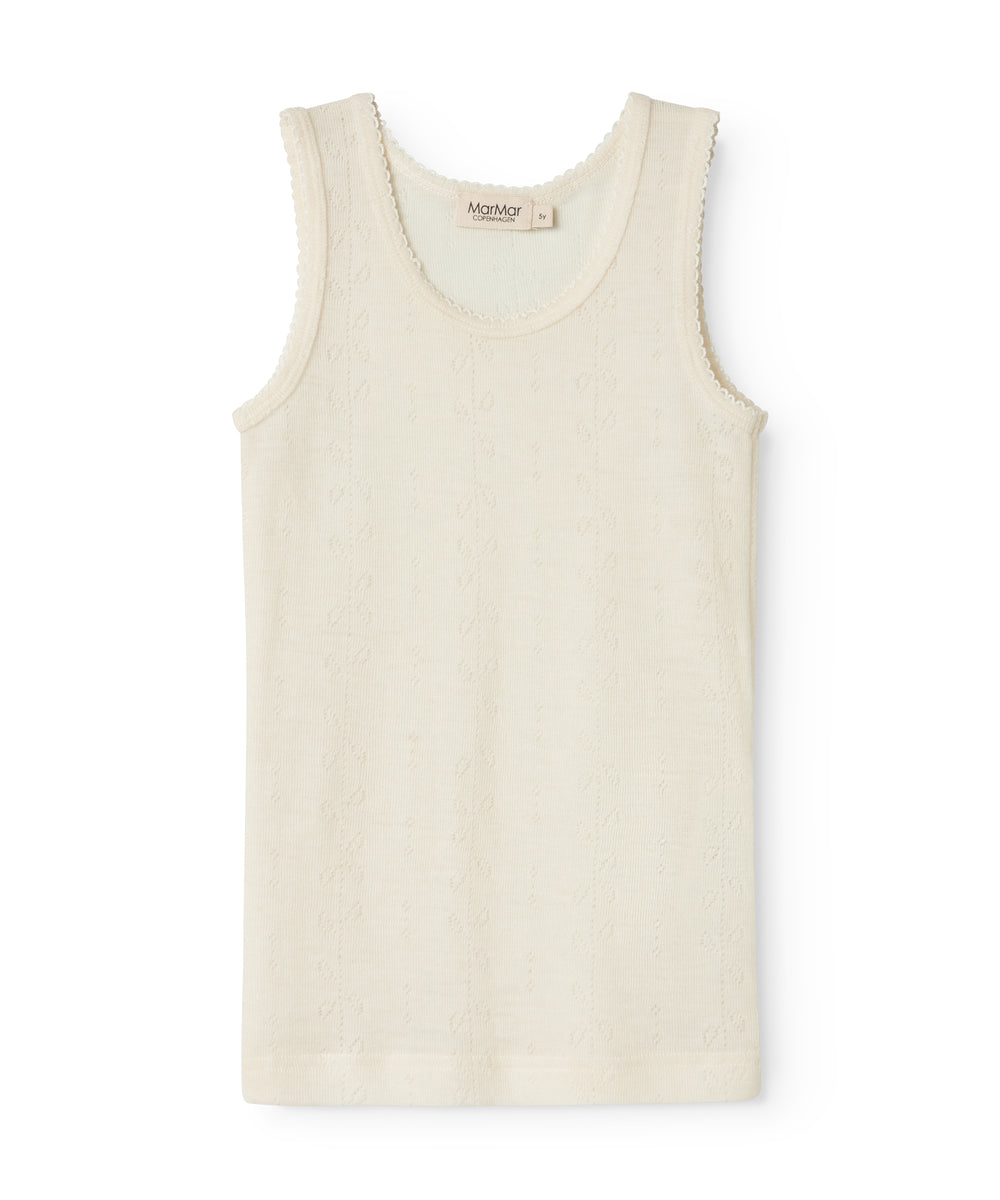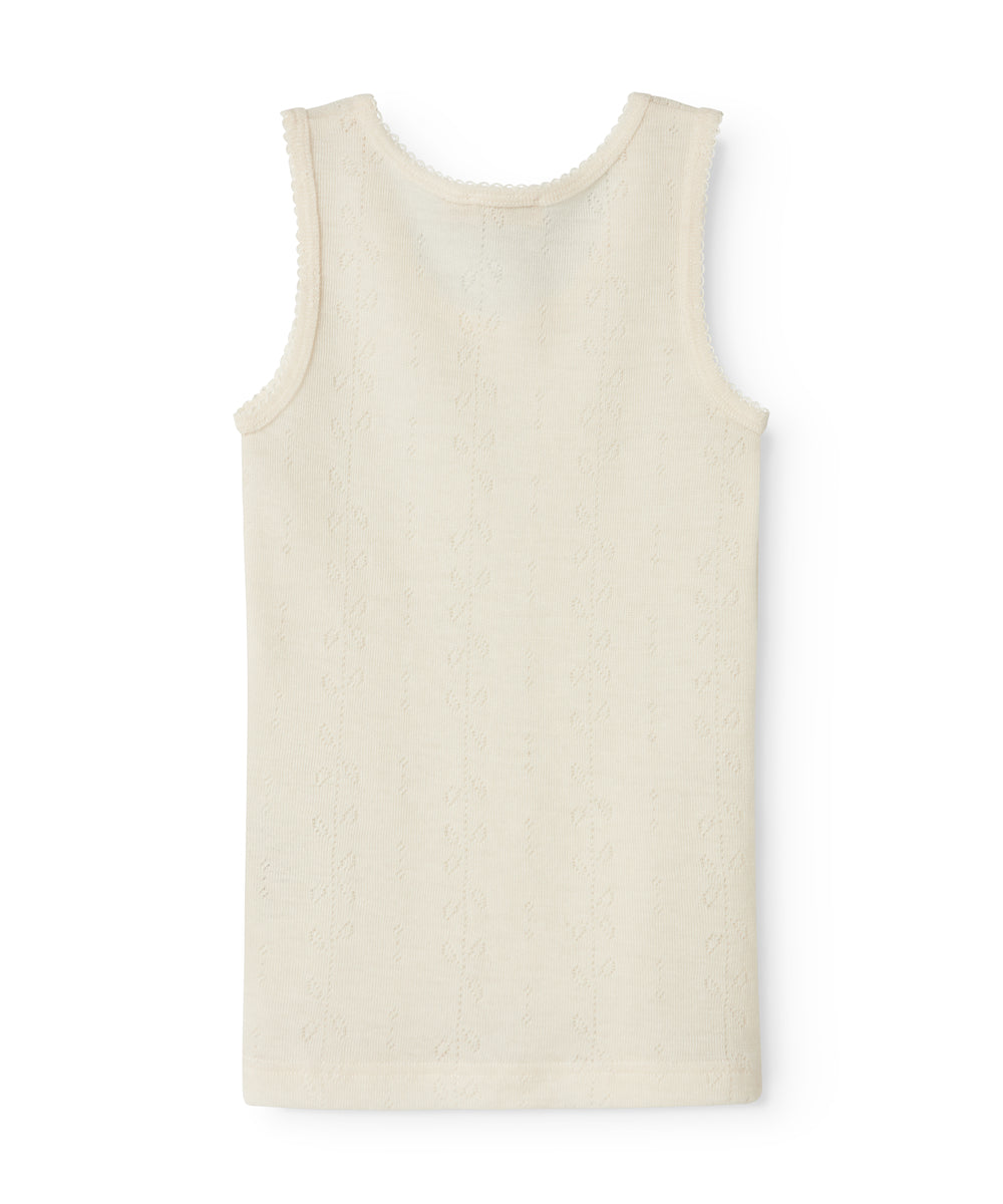 Strap Vest, Wool Pointelle Undershirt - Natural