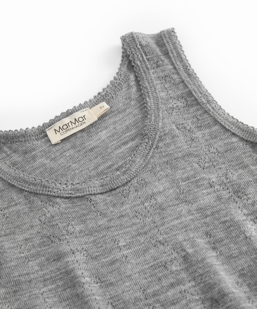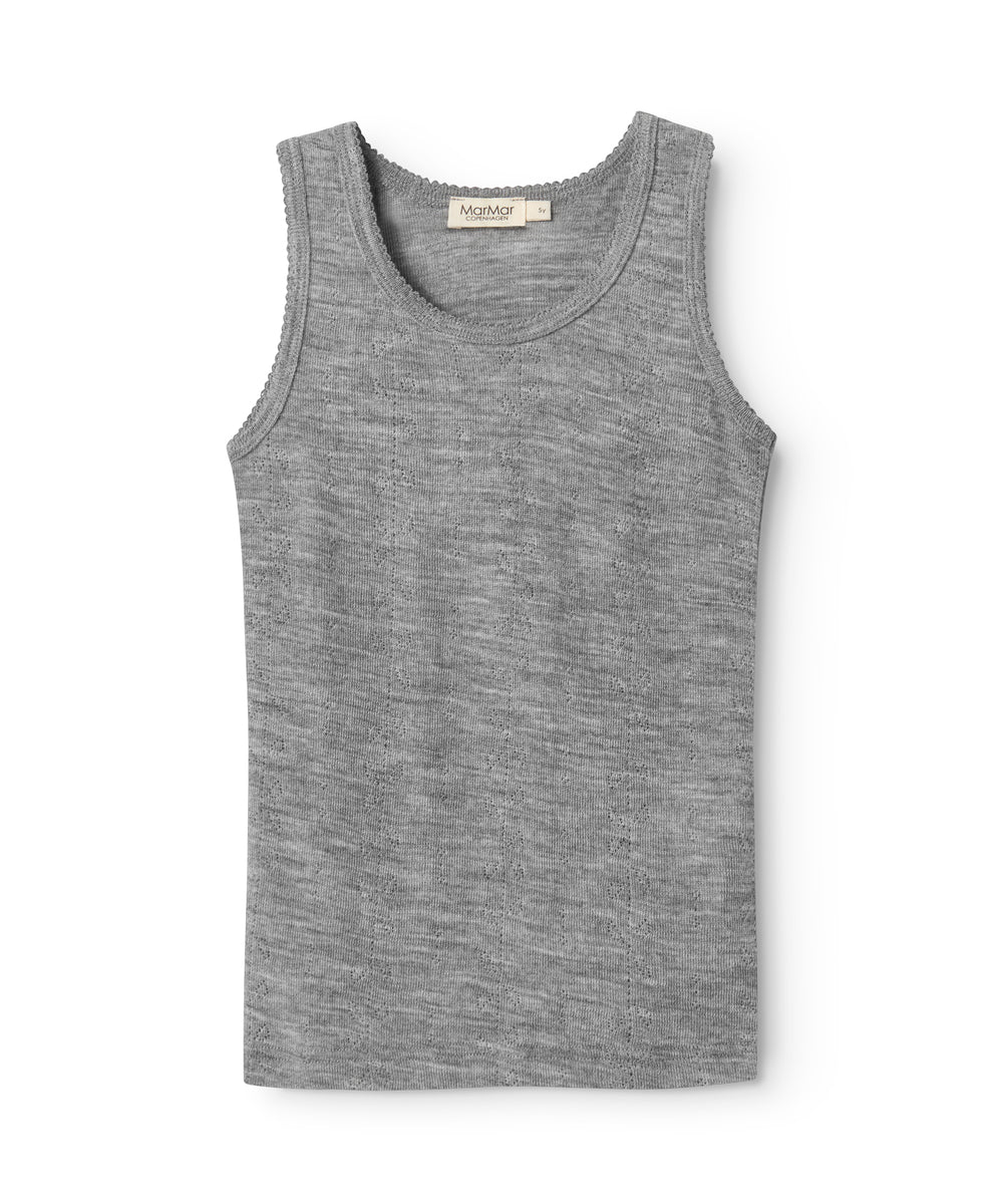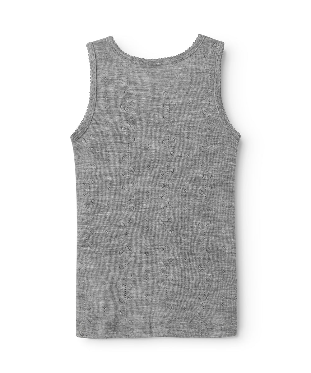 Strap Vest, Wool Pointelle Undershirt - Grey Melange