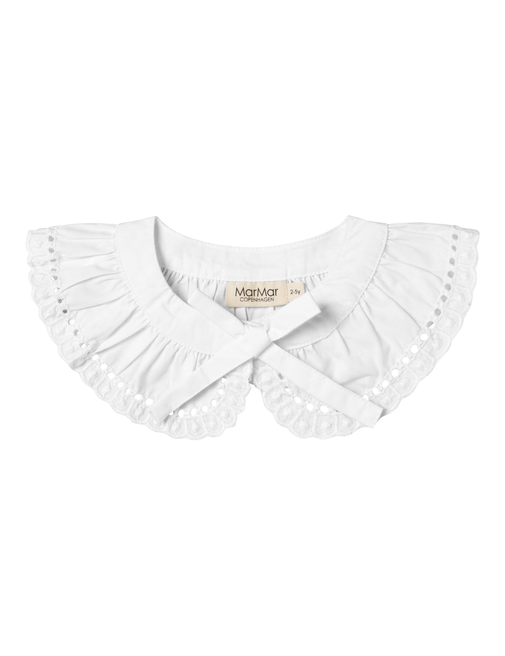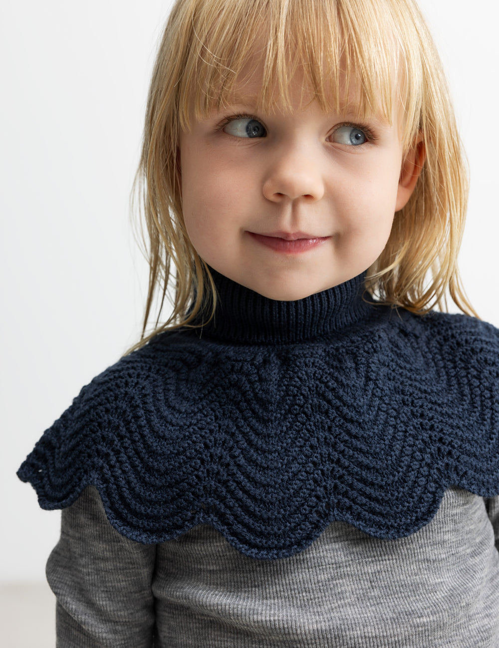 Pige med brun ternet tørklæde bundet om halsen og lyserød t-shirt