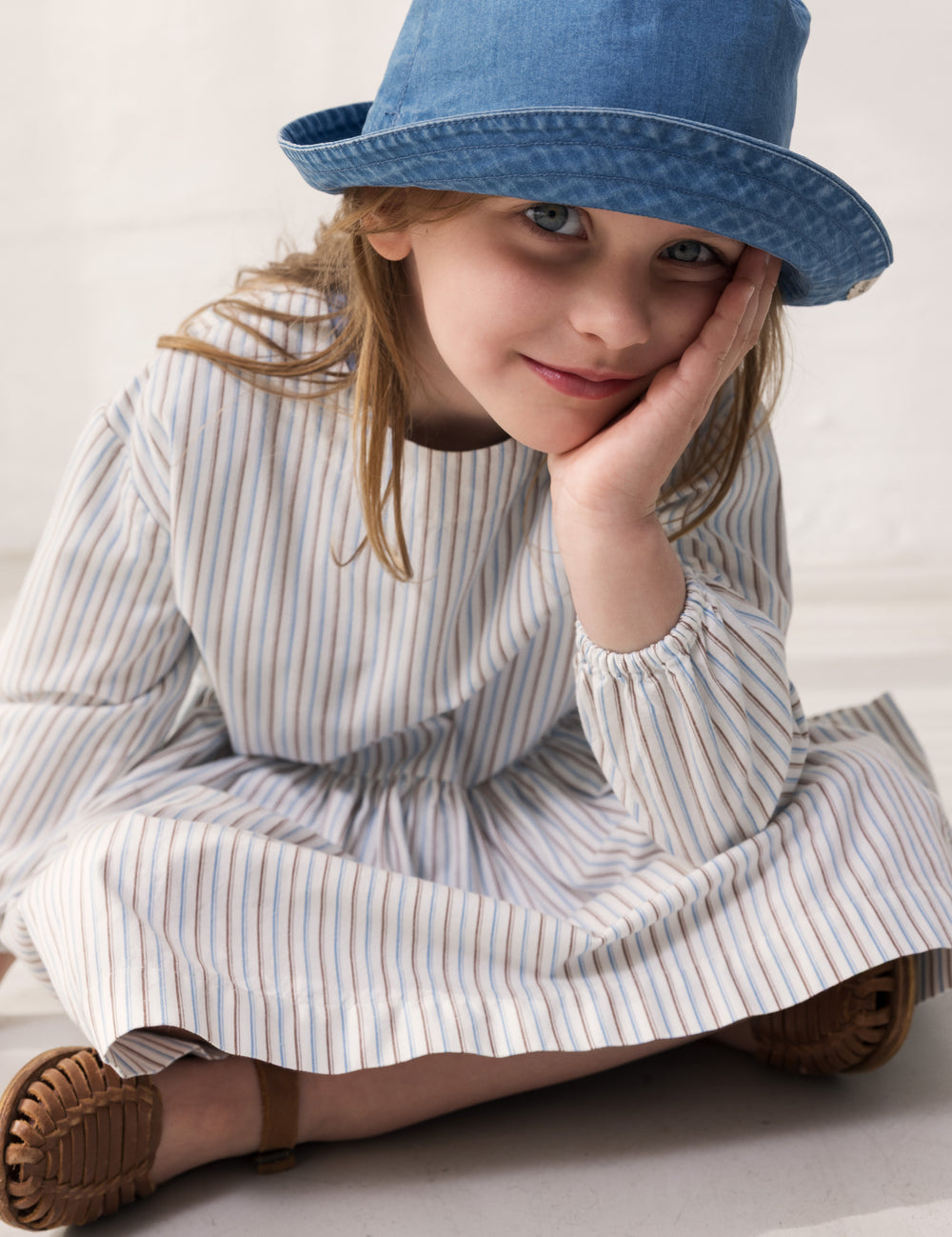 Dama LS, Dress - Blue Stripe