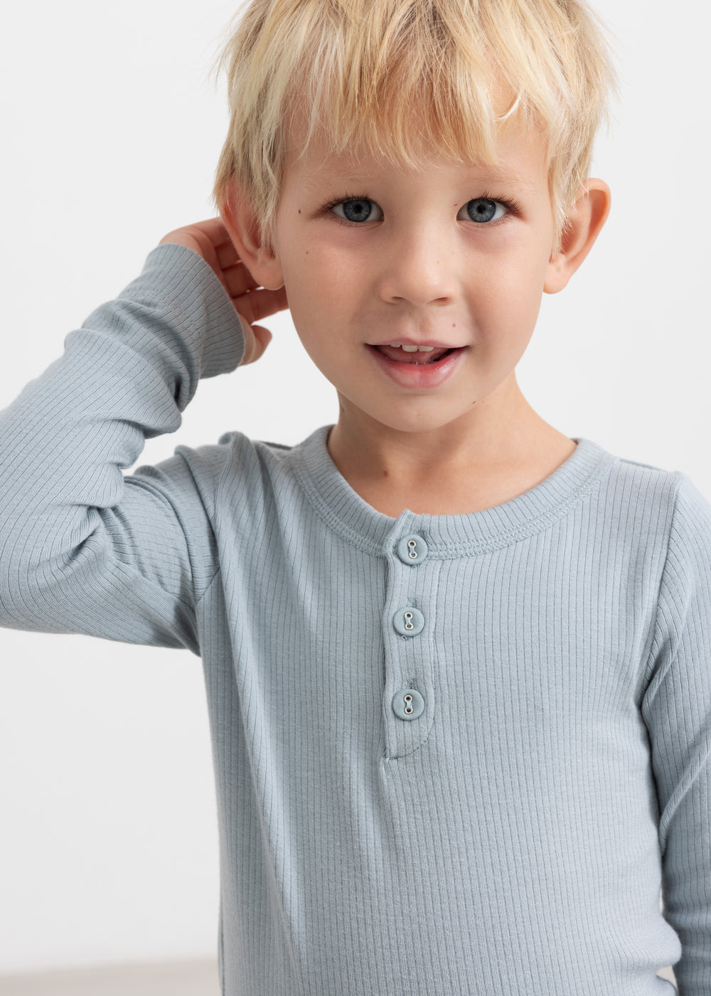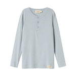 Long-sleeved t-shirt for children with placket button closure. The t-shirt is incredibly soft, very stretchy and comfortable to wear.