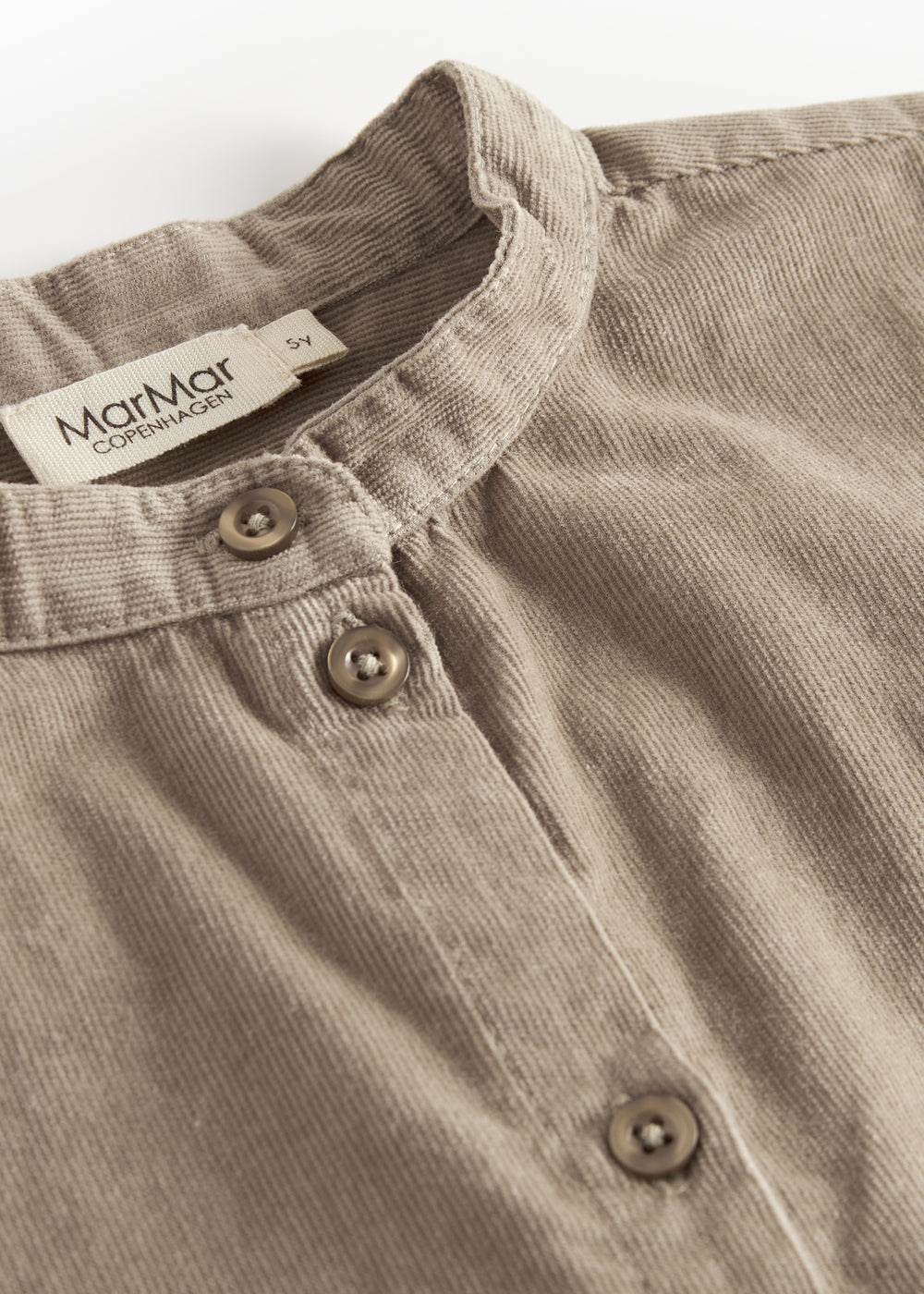 Beige skjorte i babyfløjl med lange ærmer og kinakrave til børn