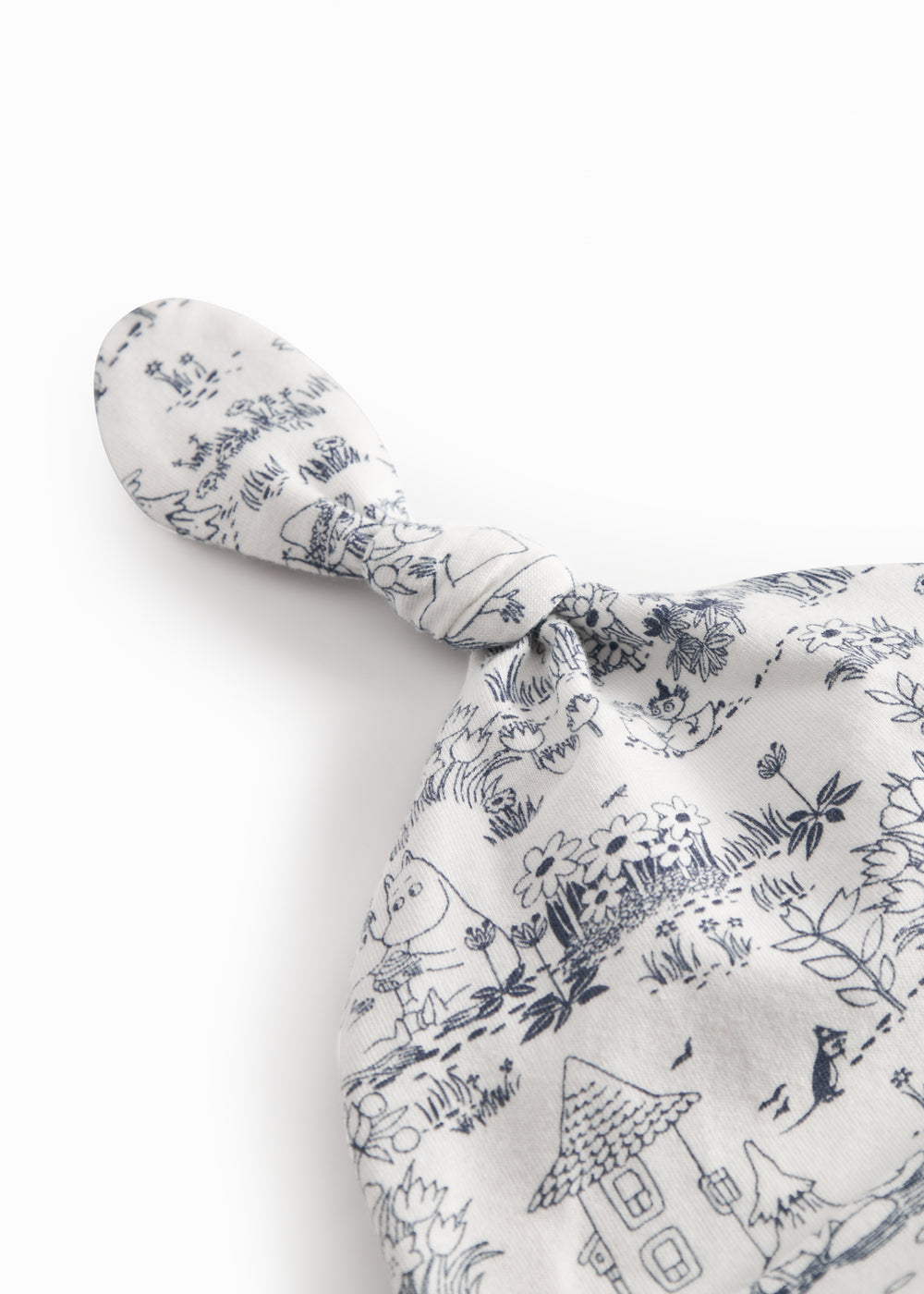 Hue for newborn with a foldable edge, sweet knot, and Moomin print