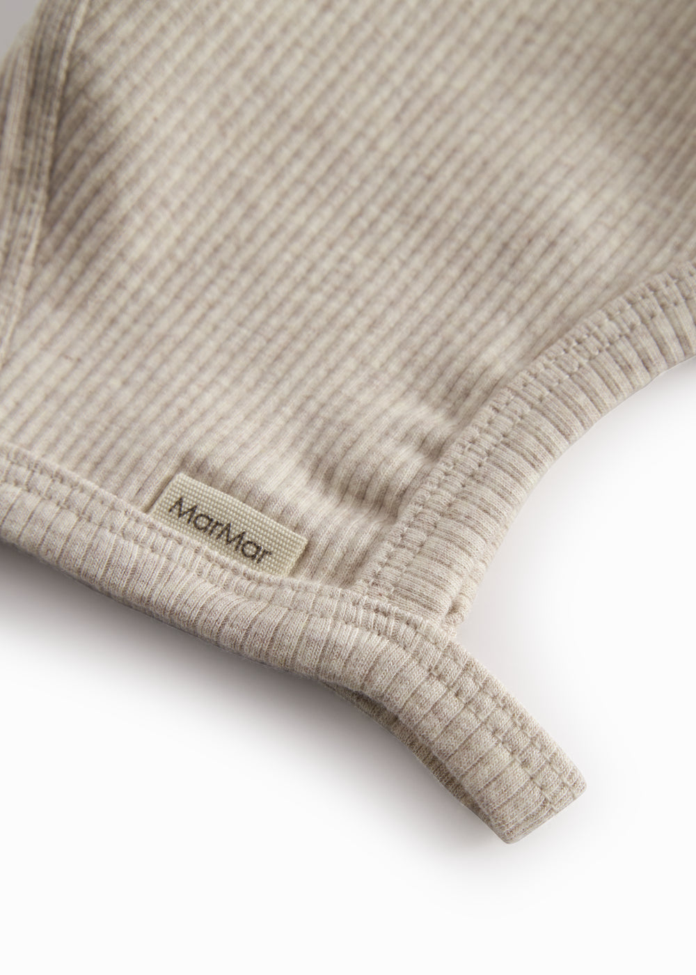 Nice little baby modal hat that closes with a snap button in two lengths. The hat is ribbed, soft, holds its shape and color and has elastane in it which makes it stretchy and comfortable to wear.