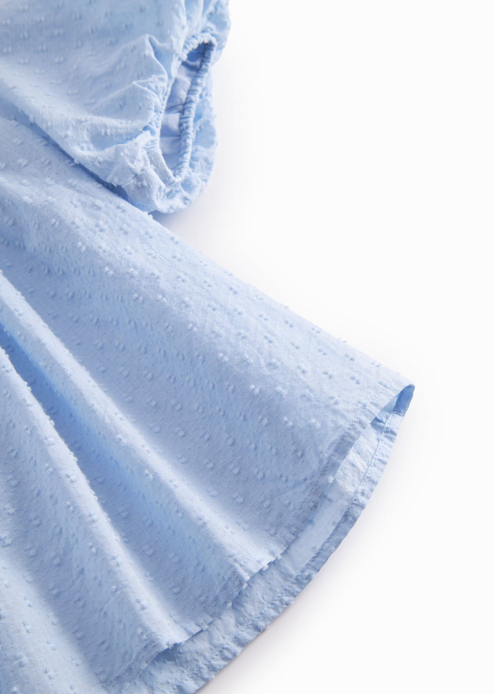 Short-sleeved blouse for children with puff sleeves and a fine embroidery pattern.