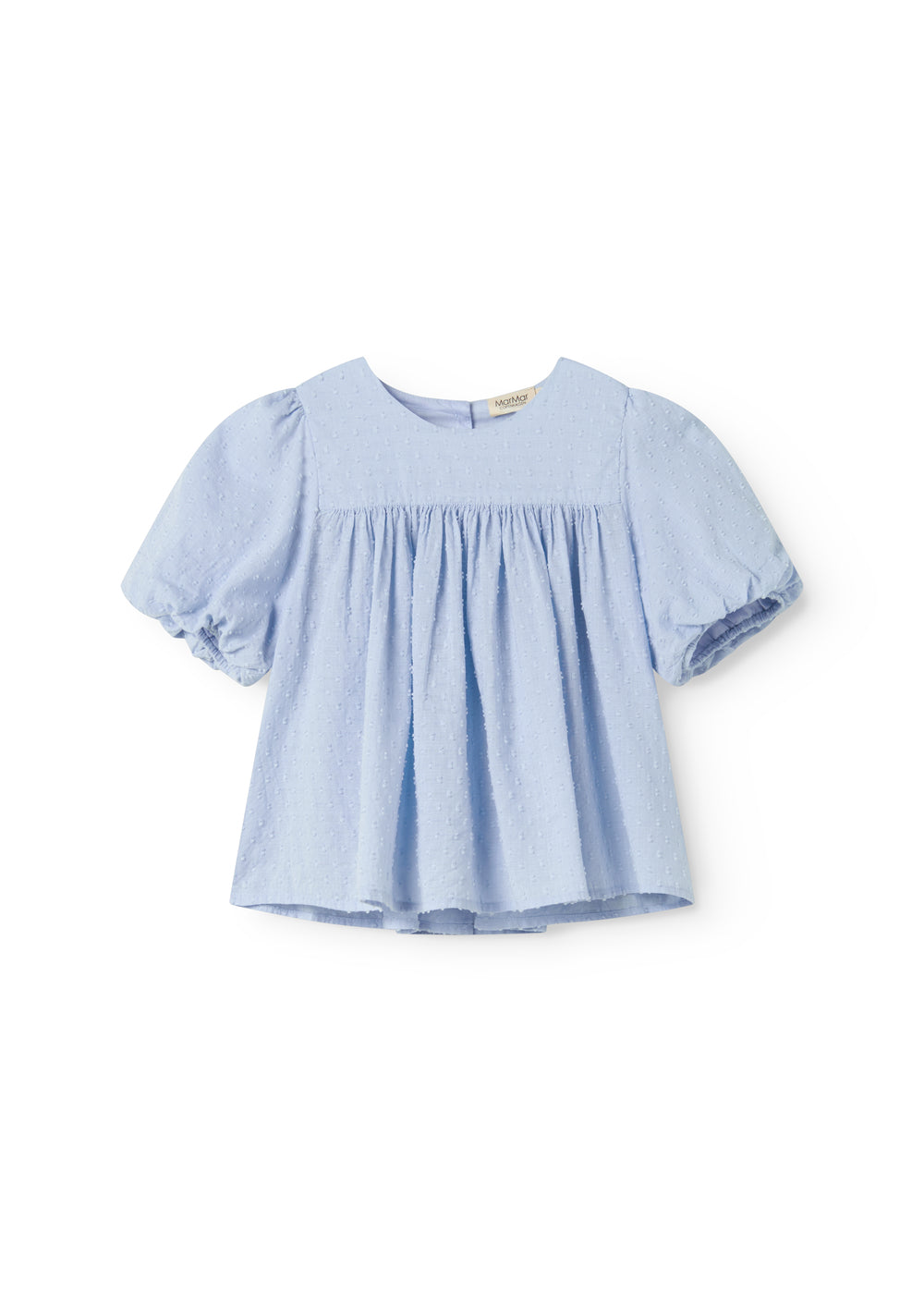 Kortærmet bluse til børn med puffærmer og fint broderimønster