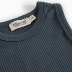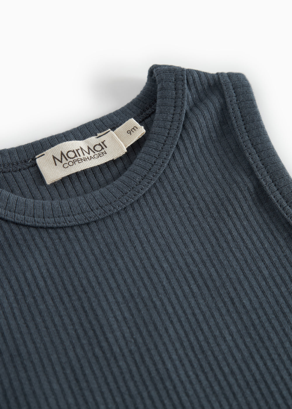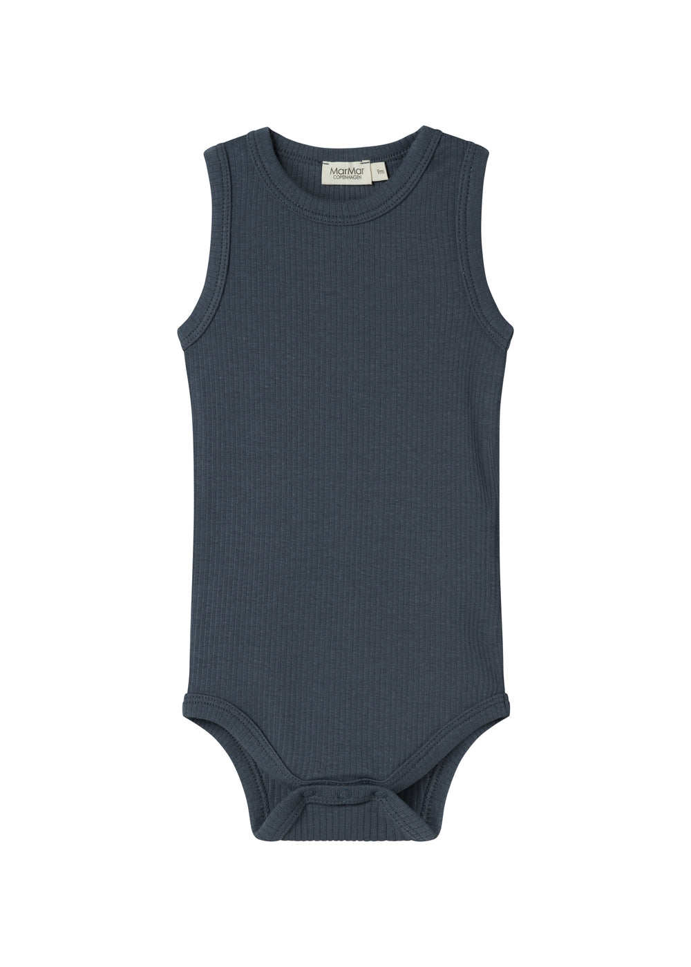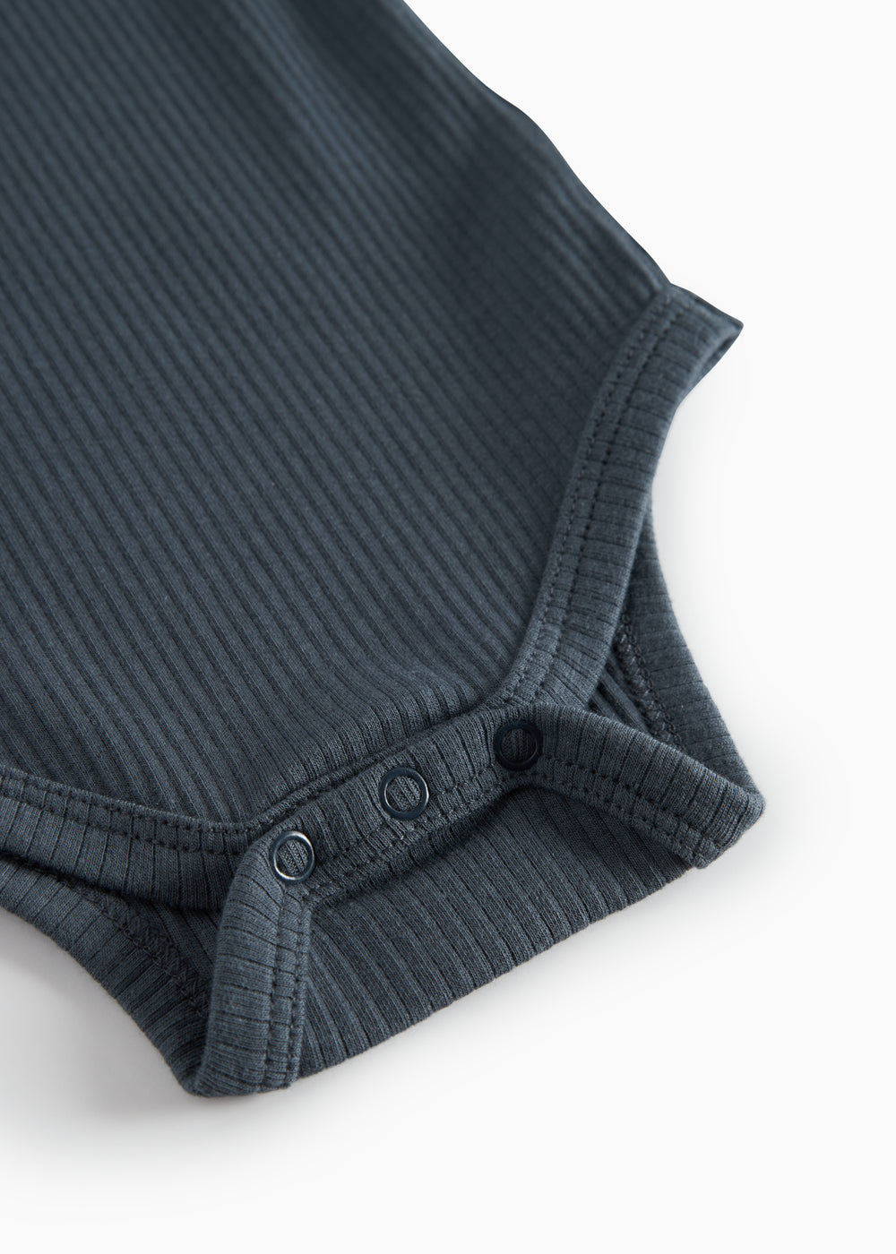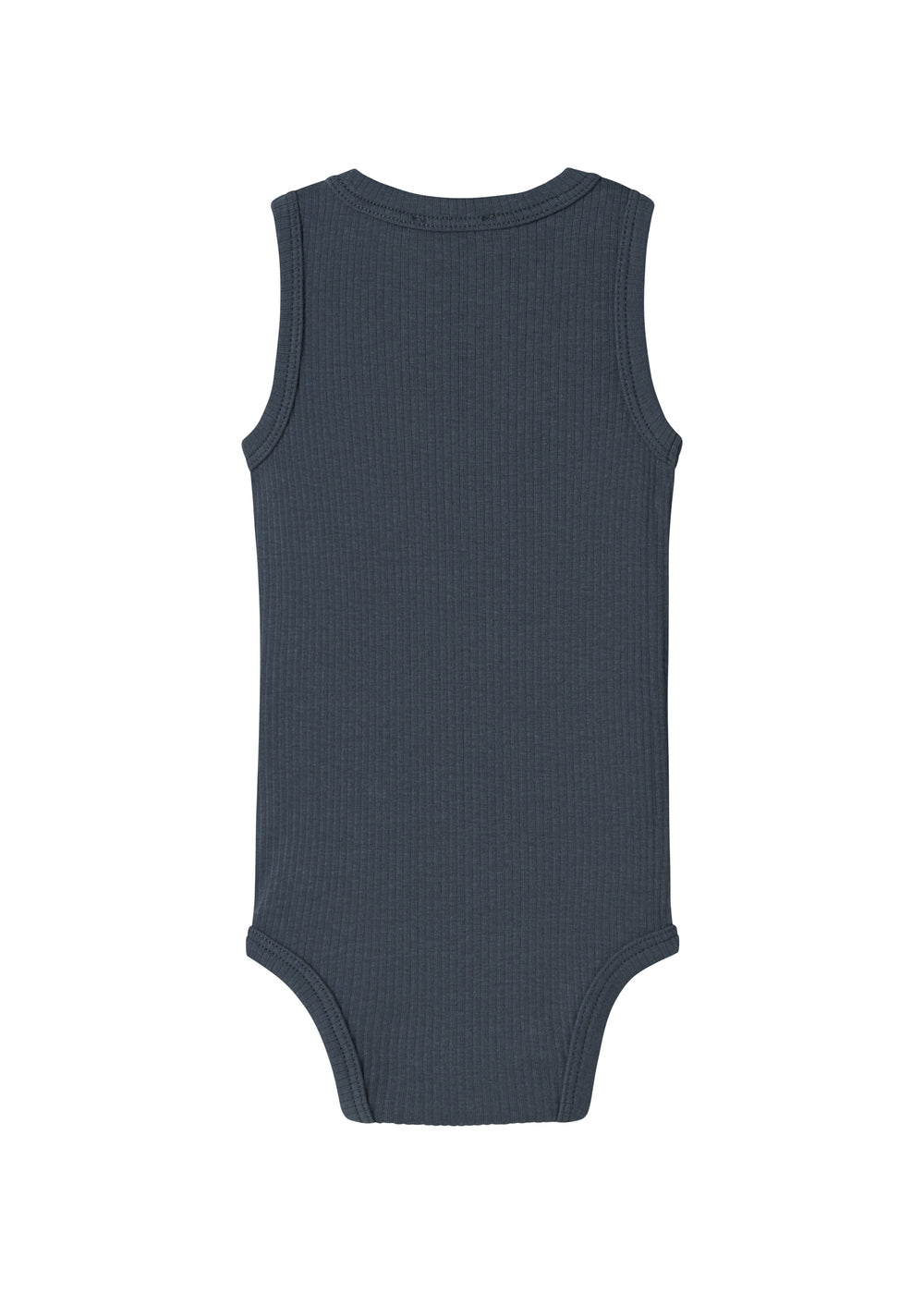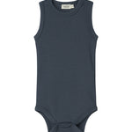 Sleeveless bodystocking that closes with snaps between the legs for easy diaper changes.