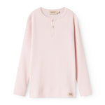 Long-sleeved modal t-shirt for children with placket button closure.
