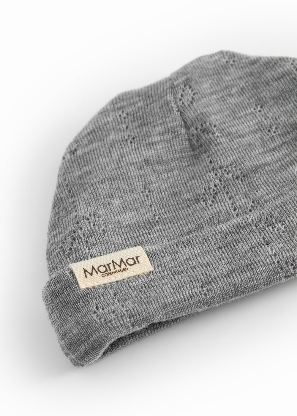 Aiko, Wool Pointelle Beanie - Gray Melange