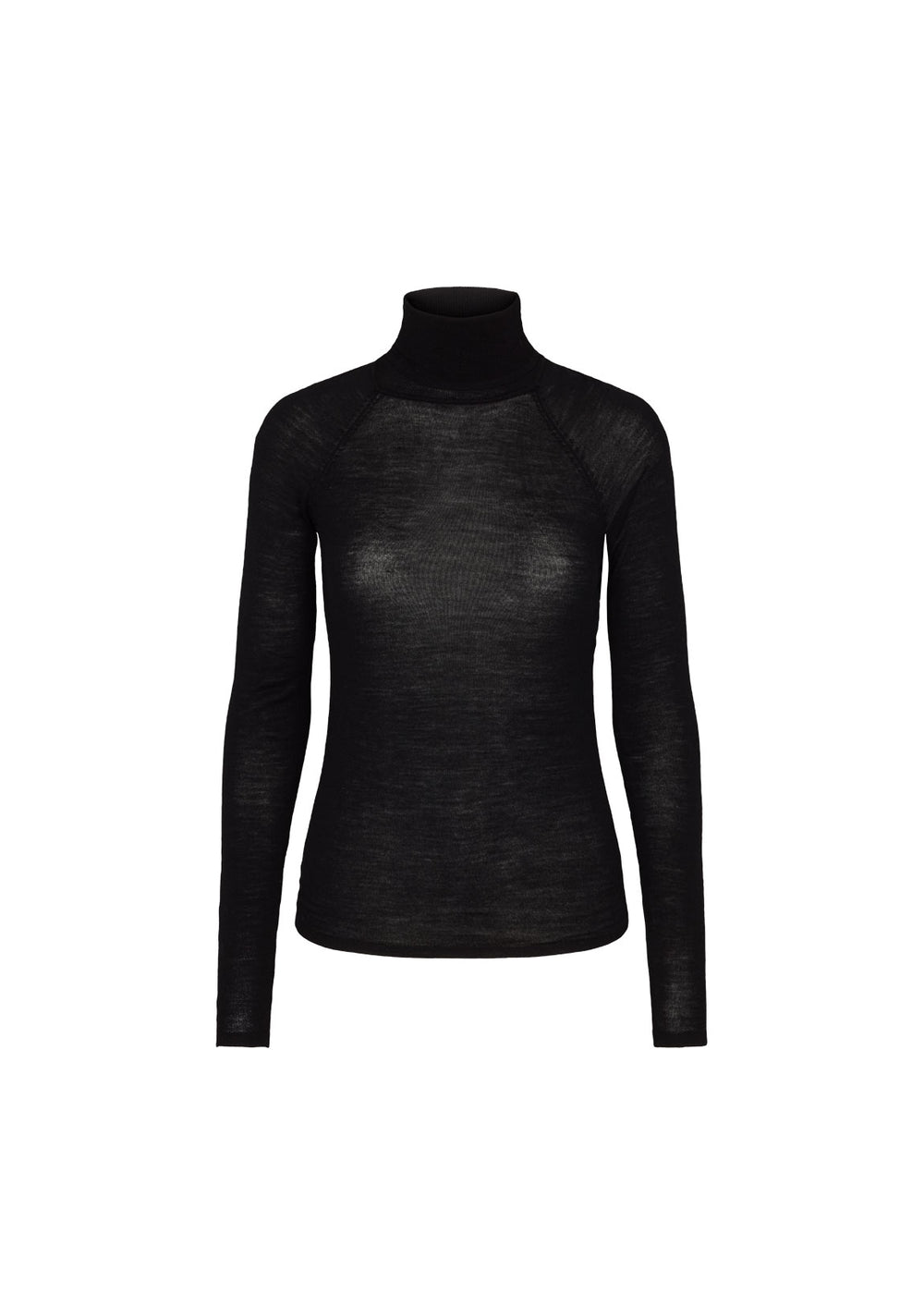 Plain knit blouse with a turtleneck, long sleeves and a tight fit. Soft and warm made of 100% merino wool.