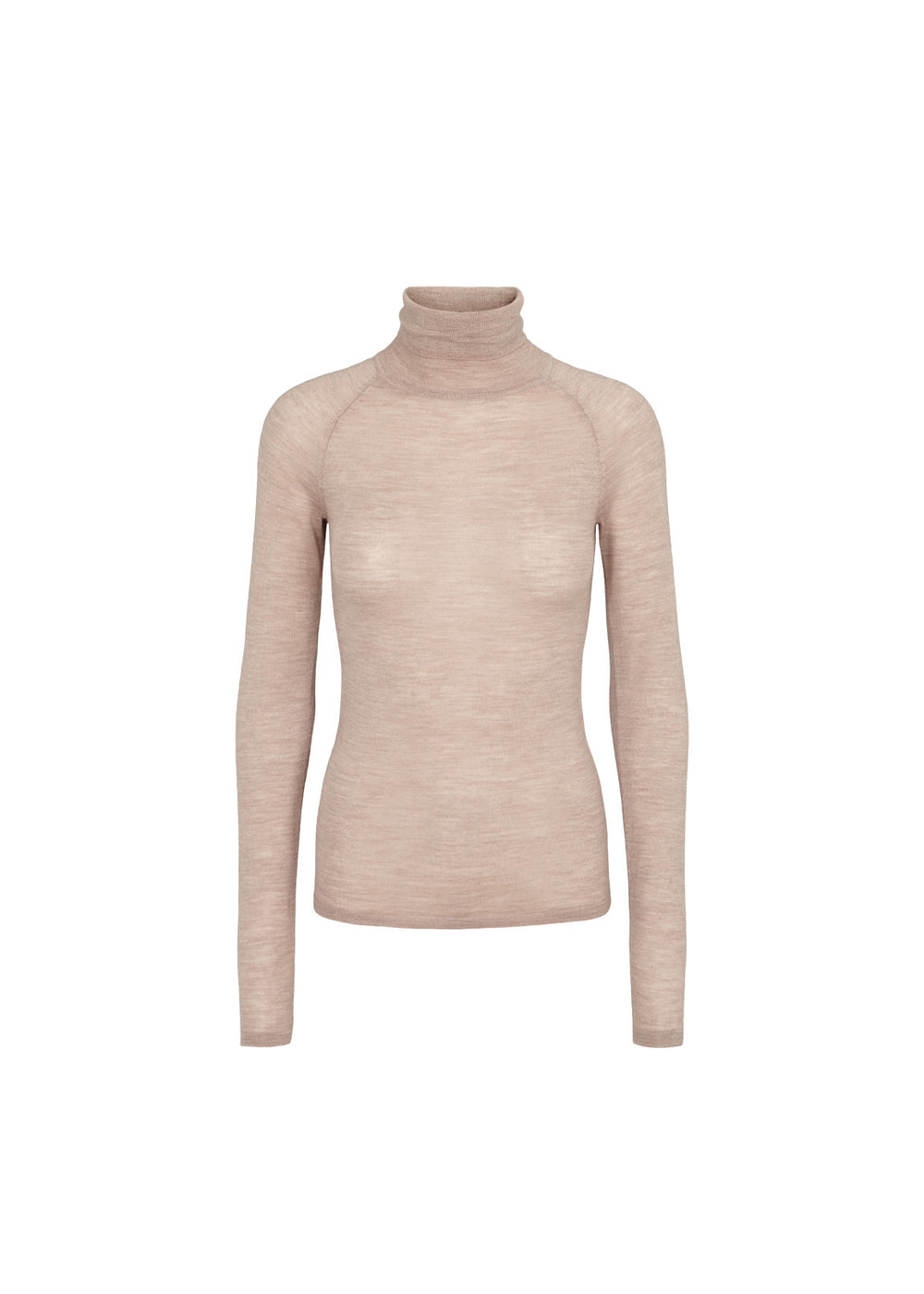 Plain knit blouse with a turtleneck, long sleeves and a tight fit. Soft and warm made of 100% merino wool.