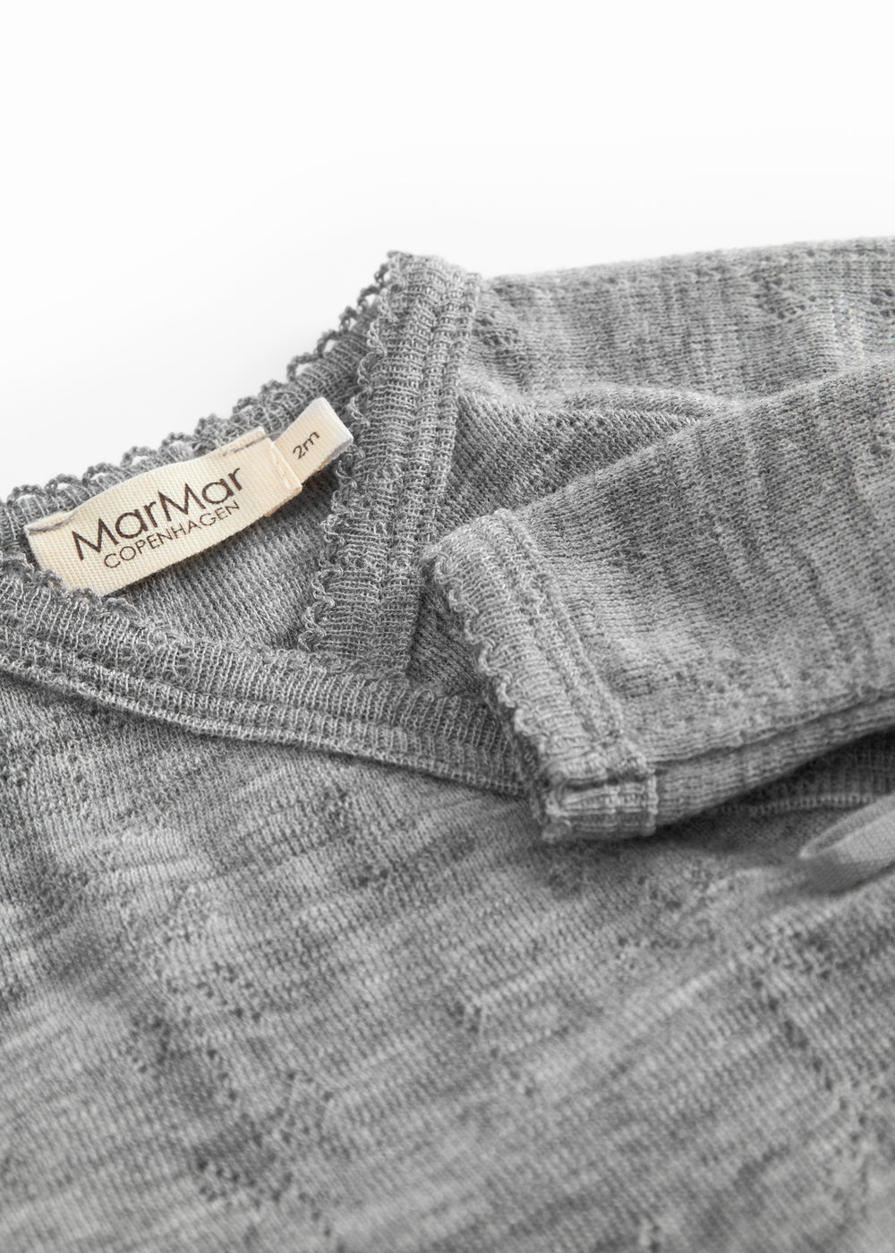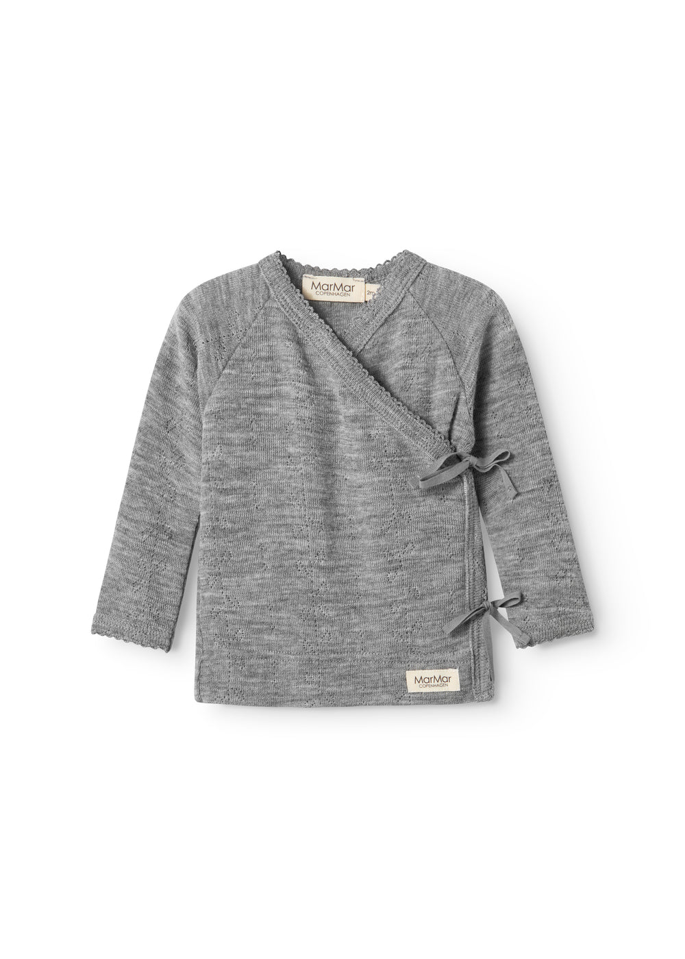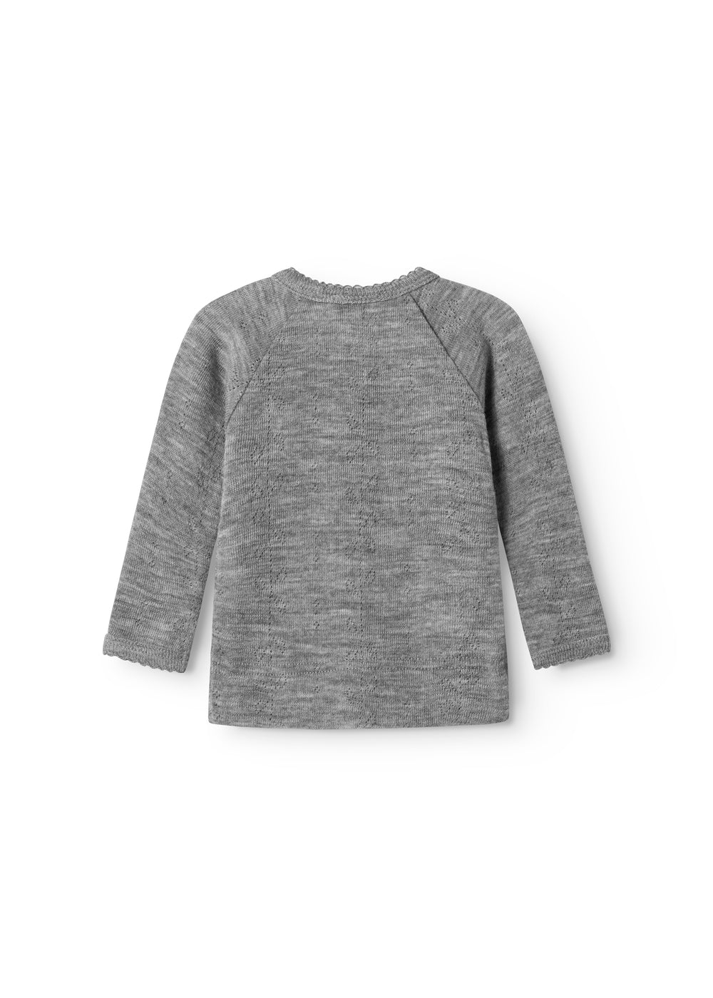 Tut Wrap LS, Wool Pointelle Blouse - Grey Melange