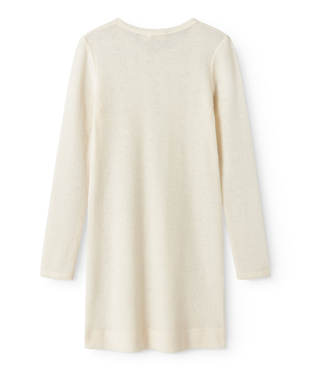 Night Dress, Wool Pointelle Sleepwear - Natural
