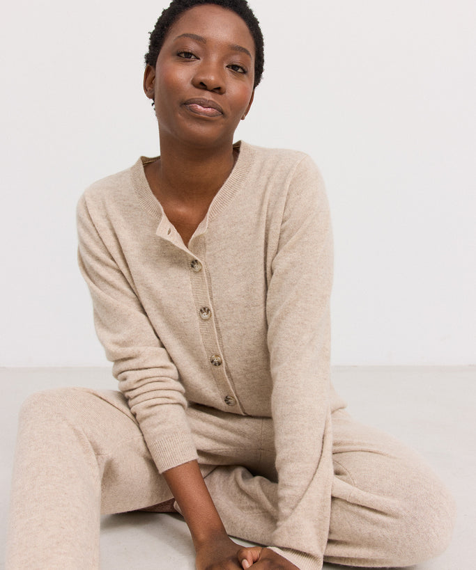 Tepi W, Kashmir Cardigan - Linseed Mel.