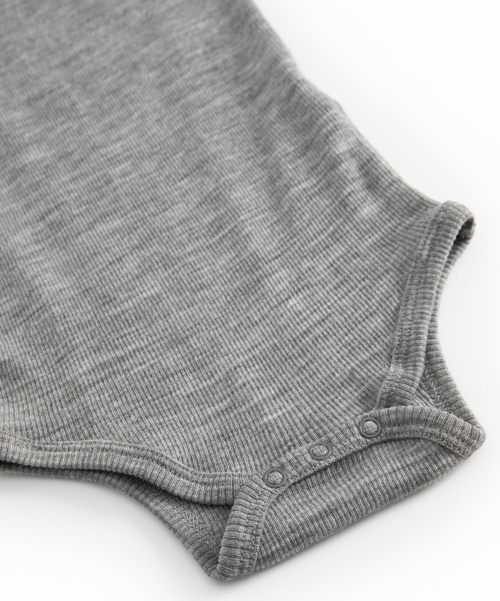 Turtleneck, Wool Rib Jumpsuit - Grey Melange