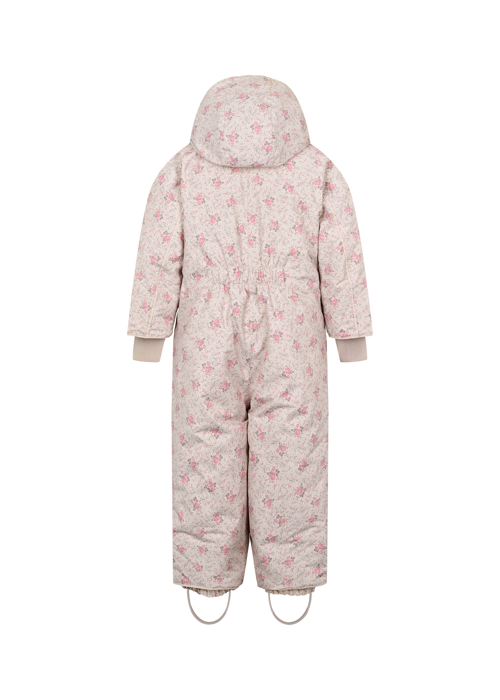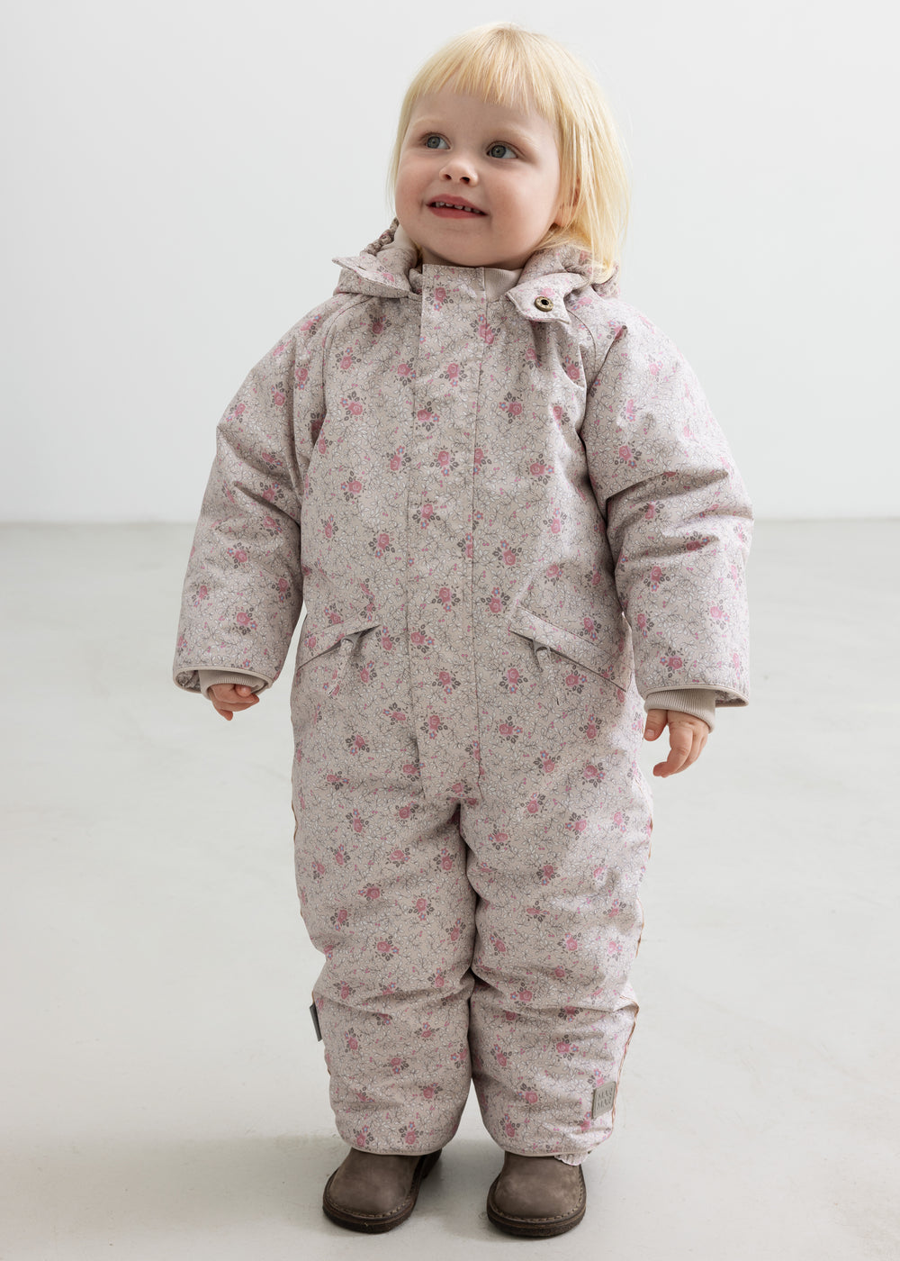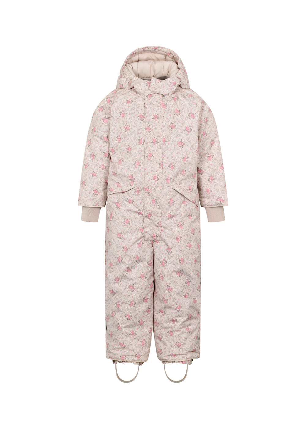 Comfortable, warm and spacious winter snowsuit for children that feels very light and soft on the body. The snowsuit has slanted side pockets with zippers and closes at the front with both a zipper and press studs. The snowsuit is equipped with a removable hood, adjustable silicone straps that can be attached under the boots to ensure a good fit and prevent snow from getting in. The snowsuit has elastic straps inside, which makes it possible to open the suit up in the car or the supermarket on the way home, where a one-piece can often feel too warm for the child.