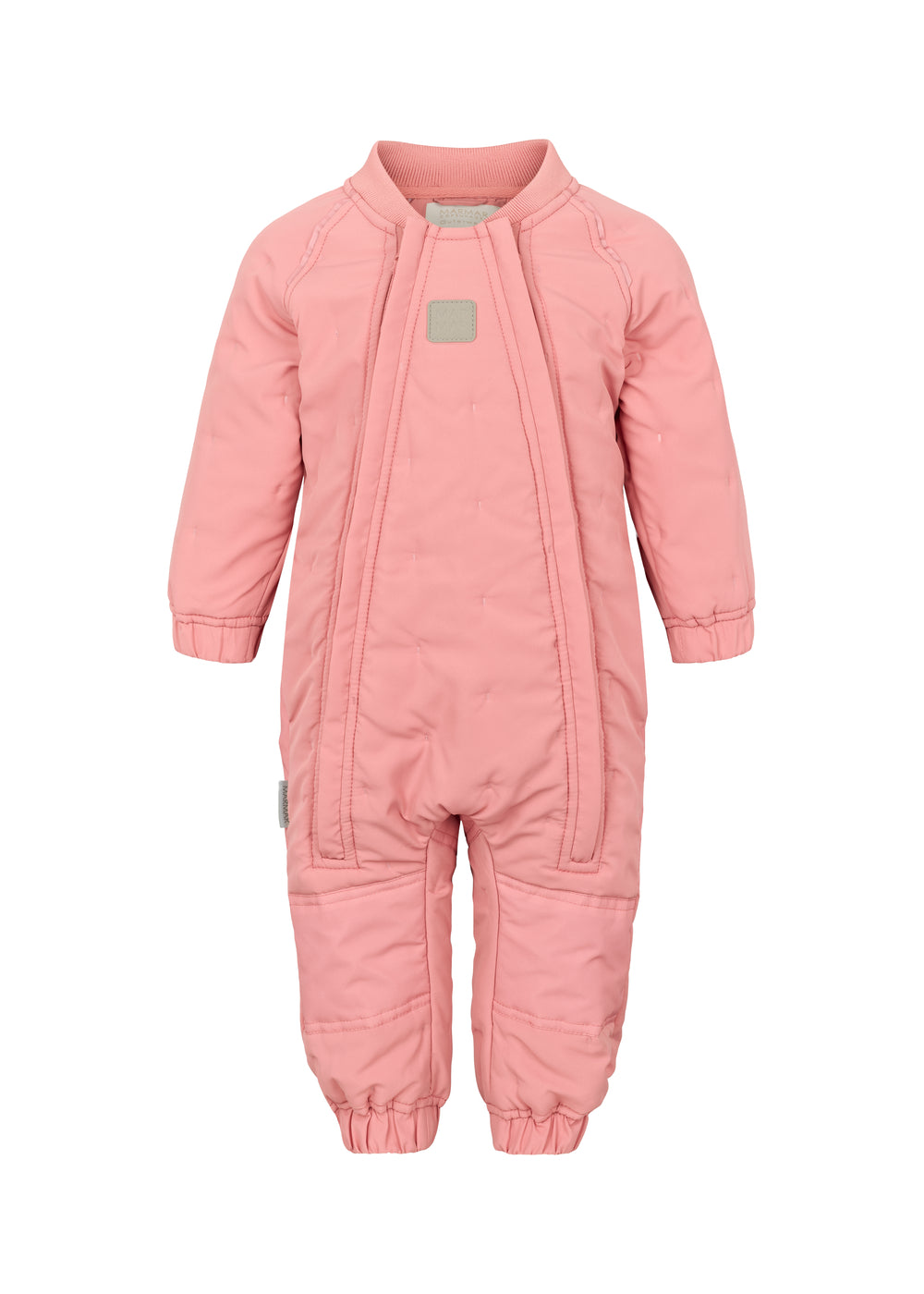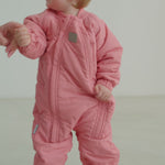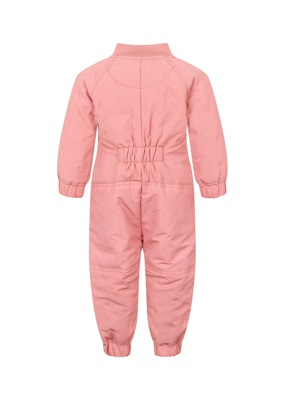 Bagside af lyserød termodragt til baby med elastik i taljen og ribkanter
