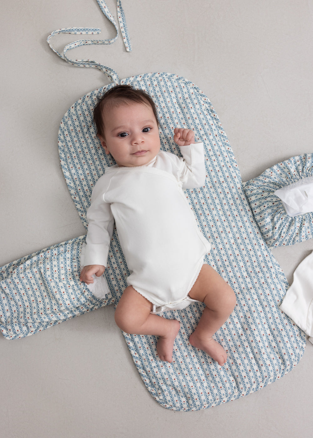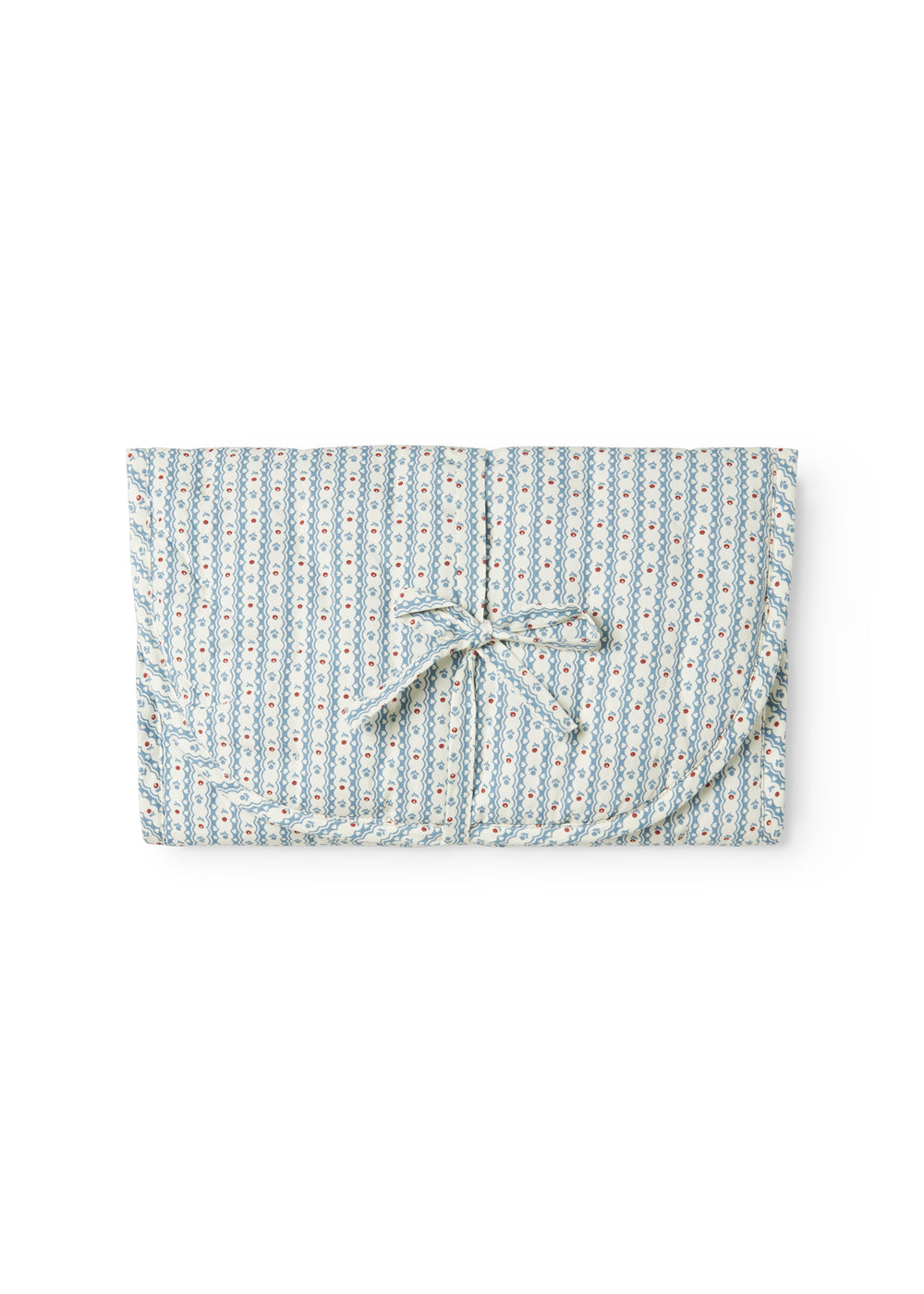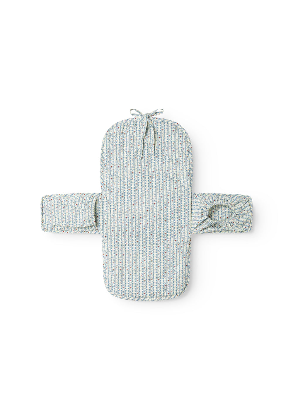 Changing mat that can be easily taken on the go. The changing mat can be folded out and with its two pockets on the side has room for both wet wipes and diapers. Measures approximately W:35 x H:70 cm + pockets.