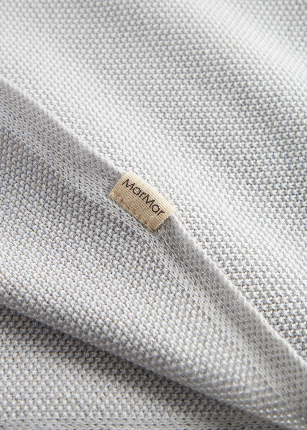 Blanket in pearl knit, measures 70cm x 100cm. The blanket is both soft and comfortable to wear.