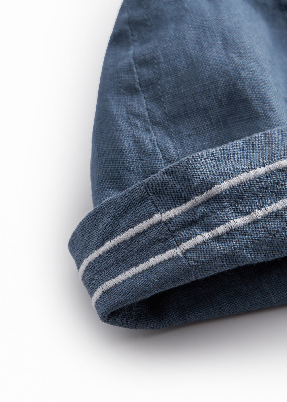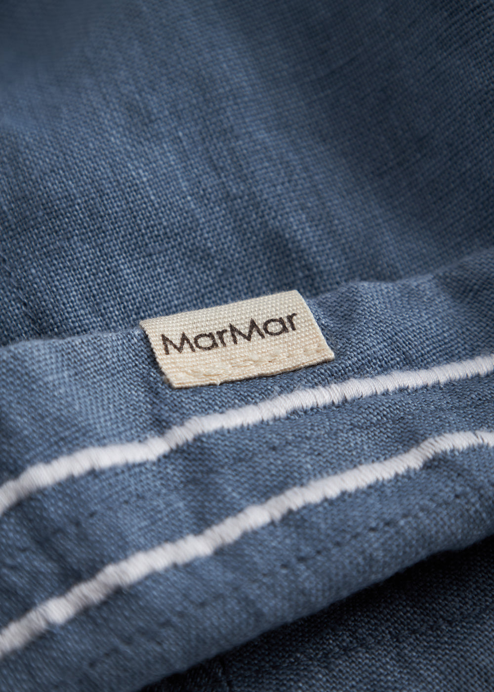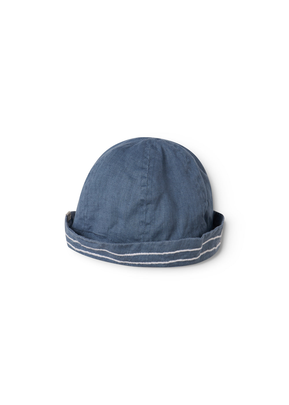 Sailor hat for children in an airy and comfortable linen quality, with embroidered stripes.