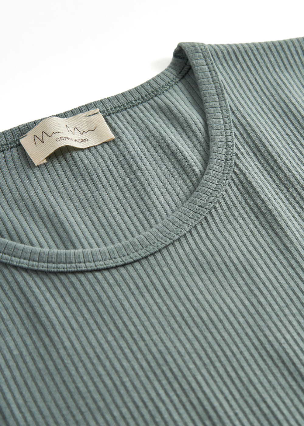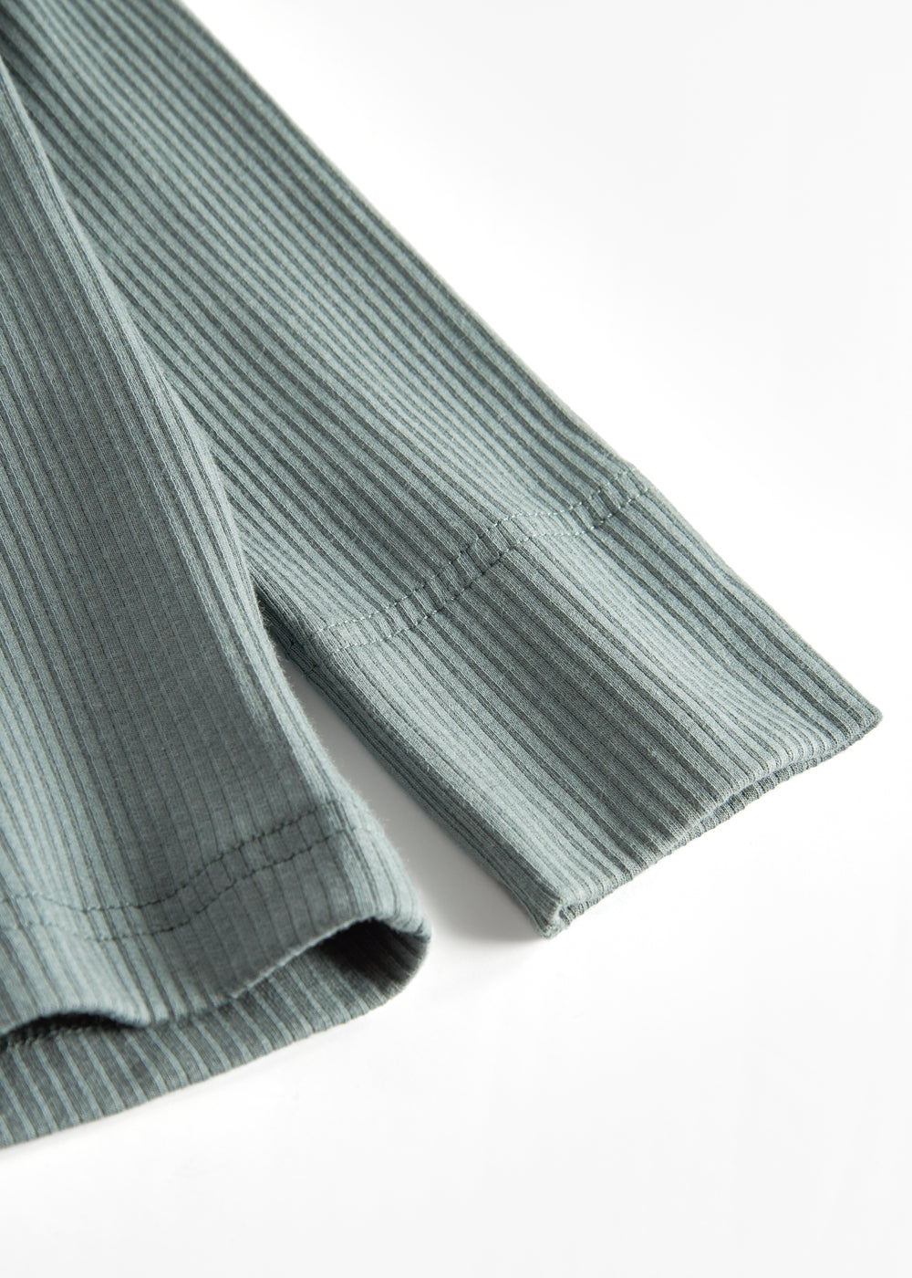 Simple long-sleeved women's t-shirt. The t-shirt is ribbed, soft, stretchy and comfortable to wear.