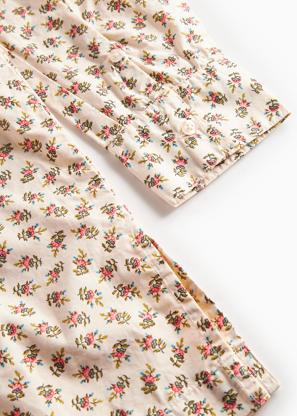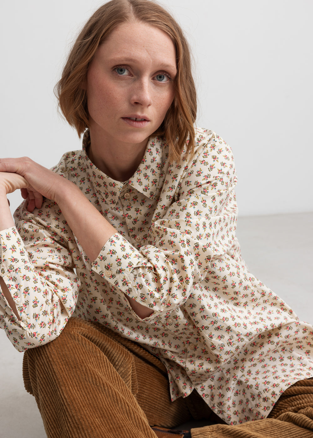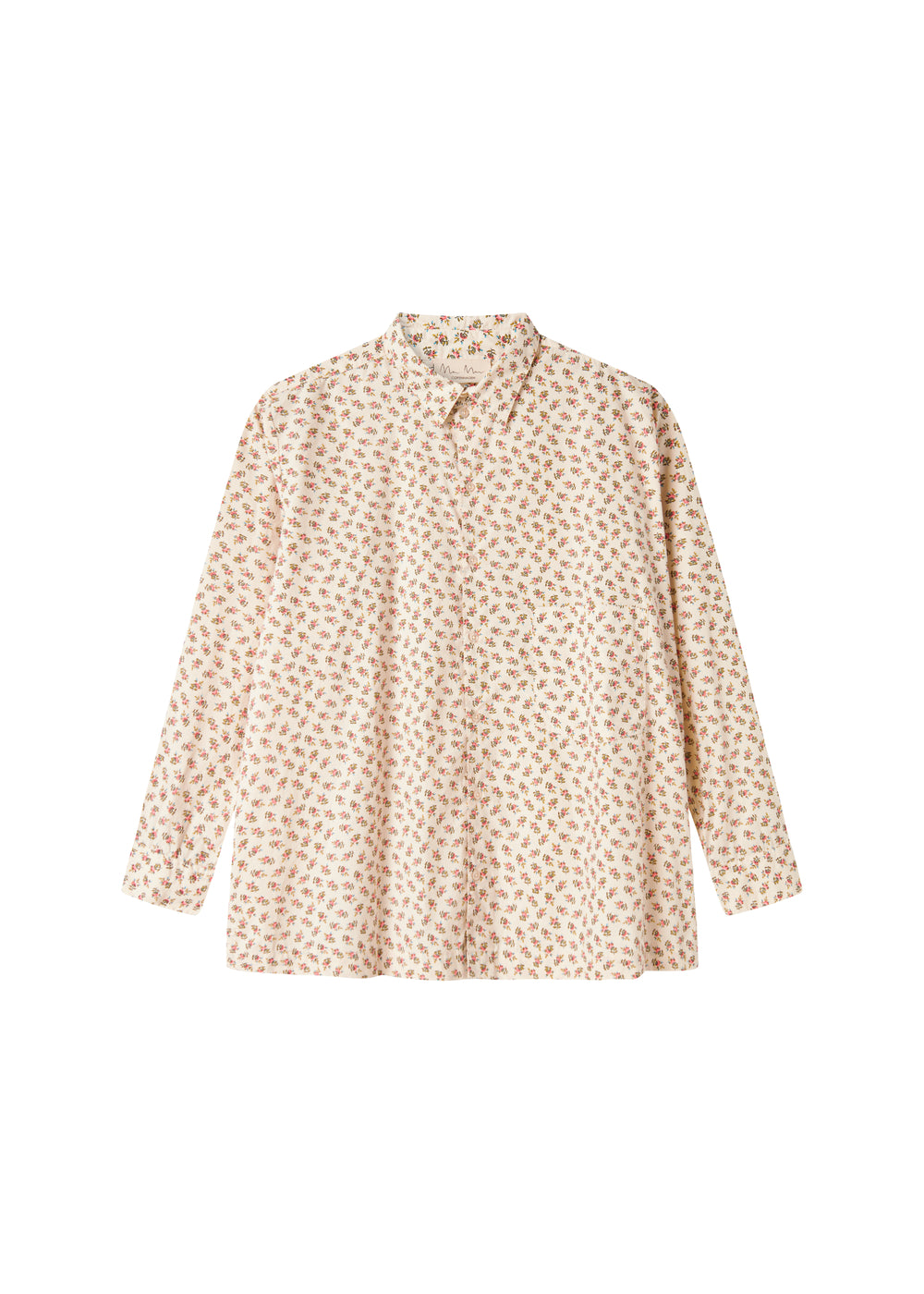 Long-sleeved shirt with hand-drawn floral print for women with collar and button closure at the front. The shirt is both comfortable, light and airy to wear.