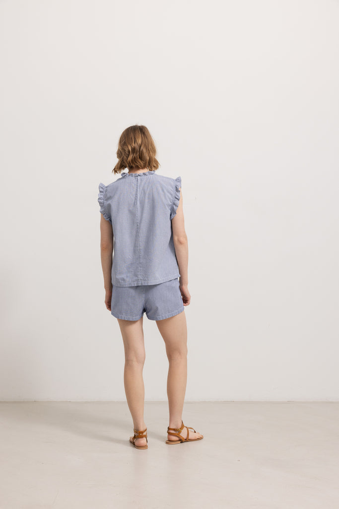 Summer shorts for women with woven stripes, side pockets and elastic waist. The shorts are made of soft and light cotton.