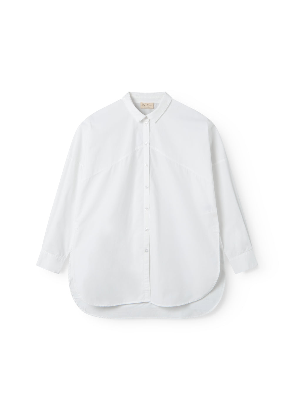 Long-sleeved shirt with a good fit and buttons down the front. The shirt has cuffs on the sleeves, a shirt collar and drop shoulder sleeves.