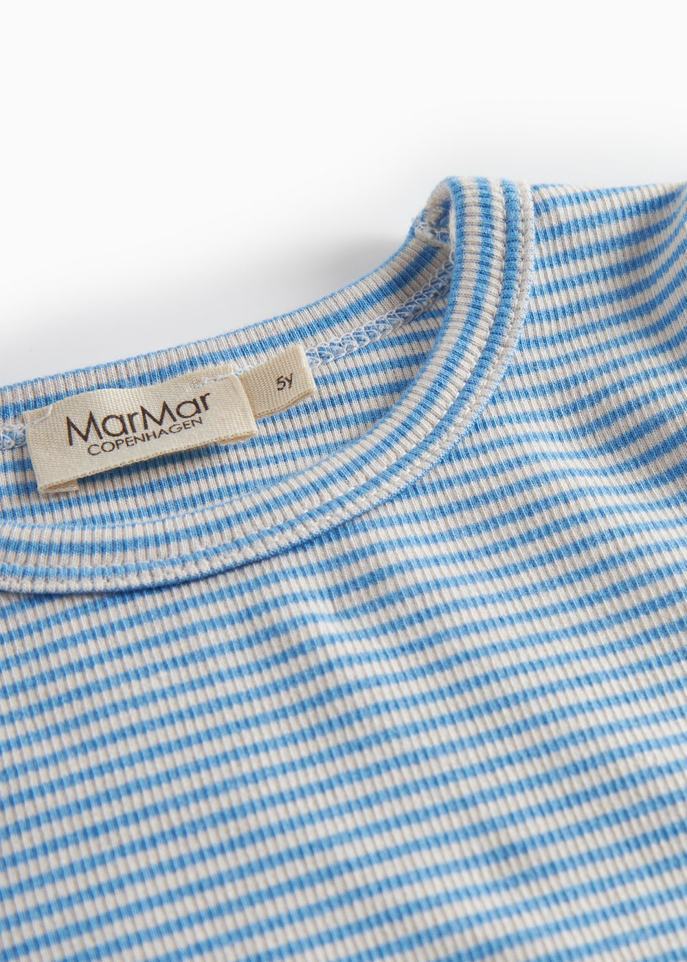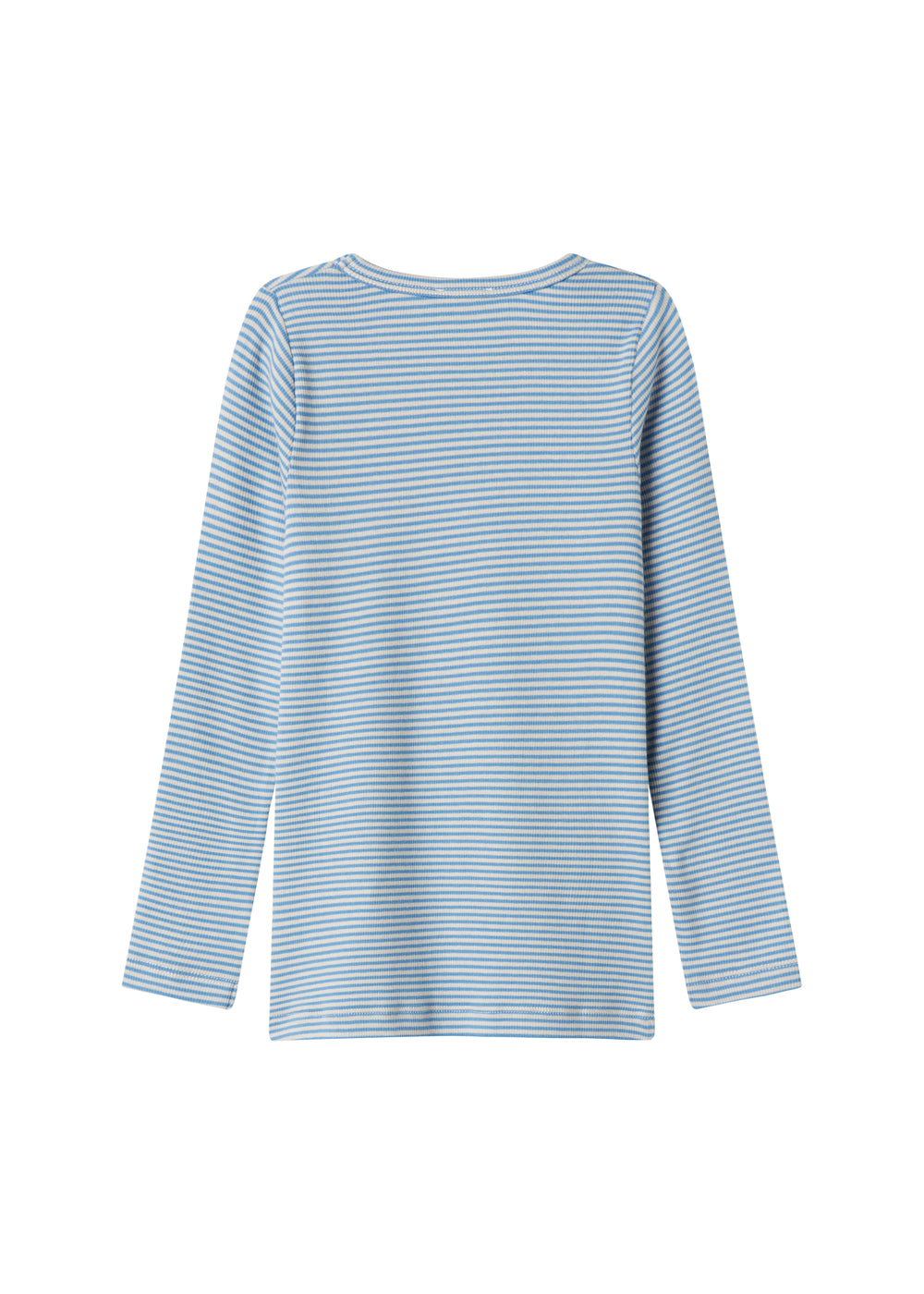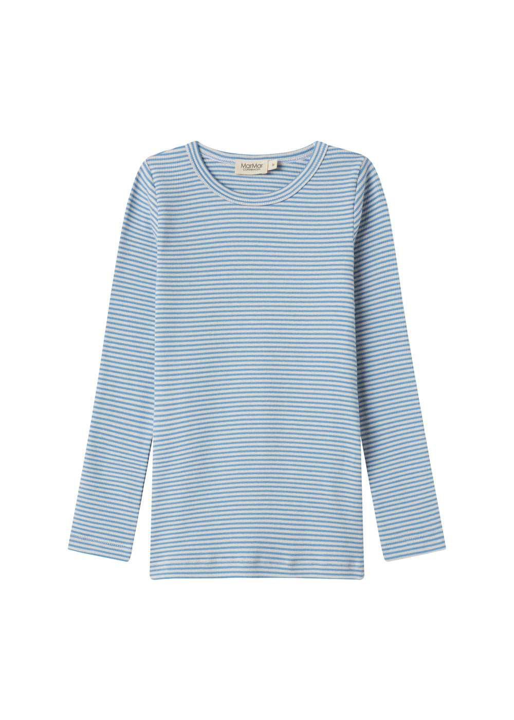 Simple long-sleeved t-shirt for children with fine stripes. The t-shirt is soft, holds its shape and color and has elastane in it, which makes it stretchy and comfortable to wear.