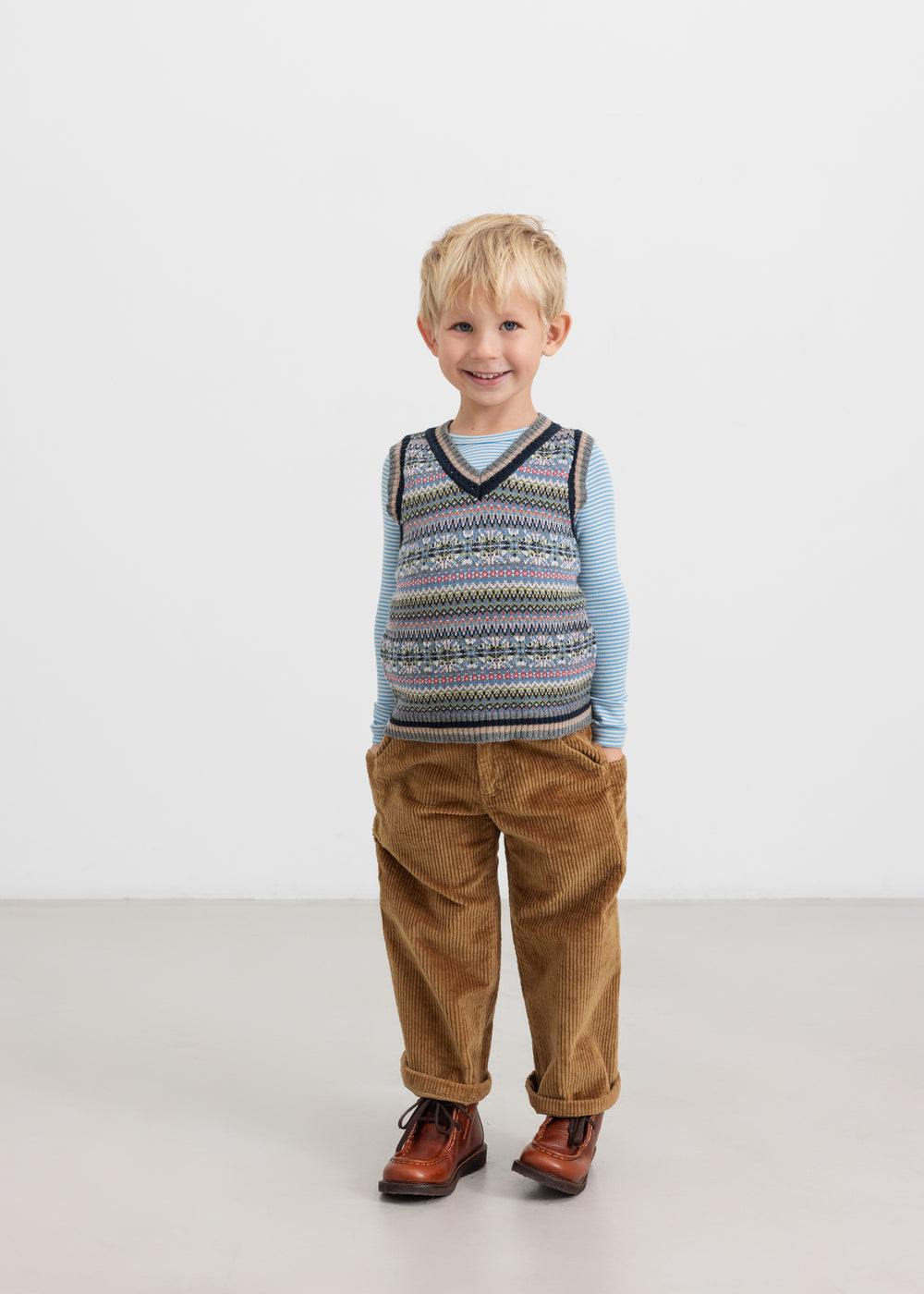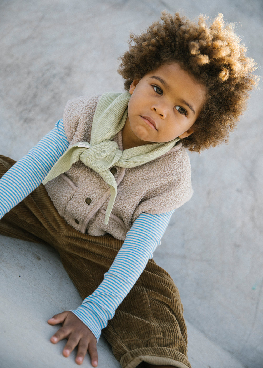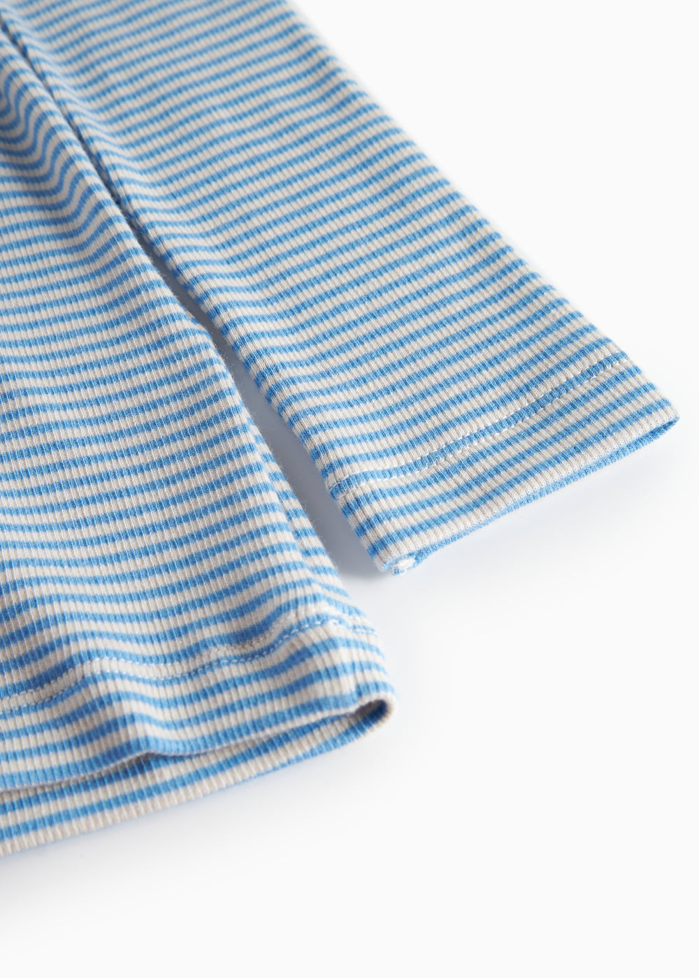 Simple long-sleeved t-shirt for children with fine stripes. The t-shirt is soft, holds its shape and color and has elastane in it, which makes it stretchy and comfortable to wear.