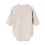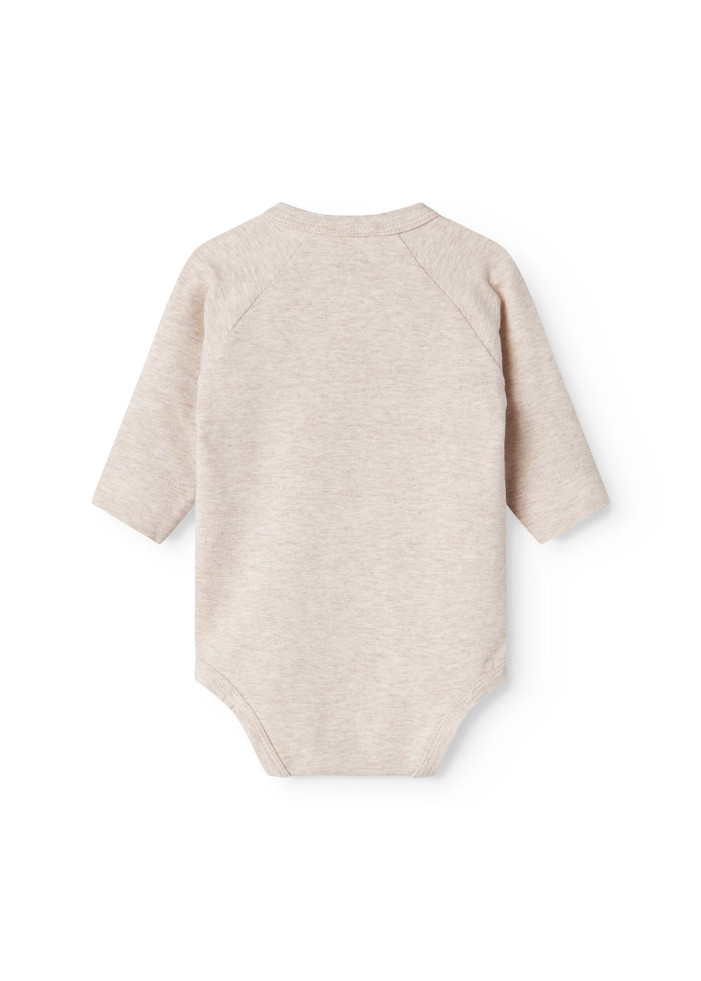 Long-sleeved bodystocking for newborns with wrap-around closure.
