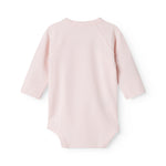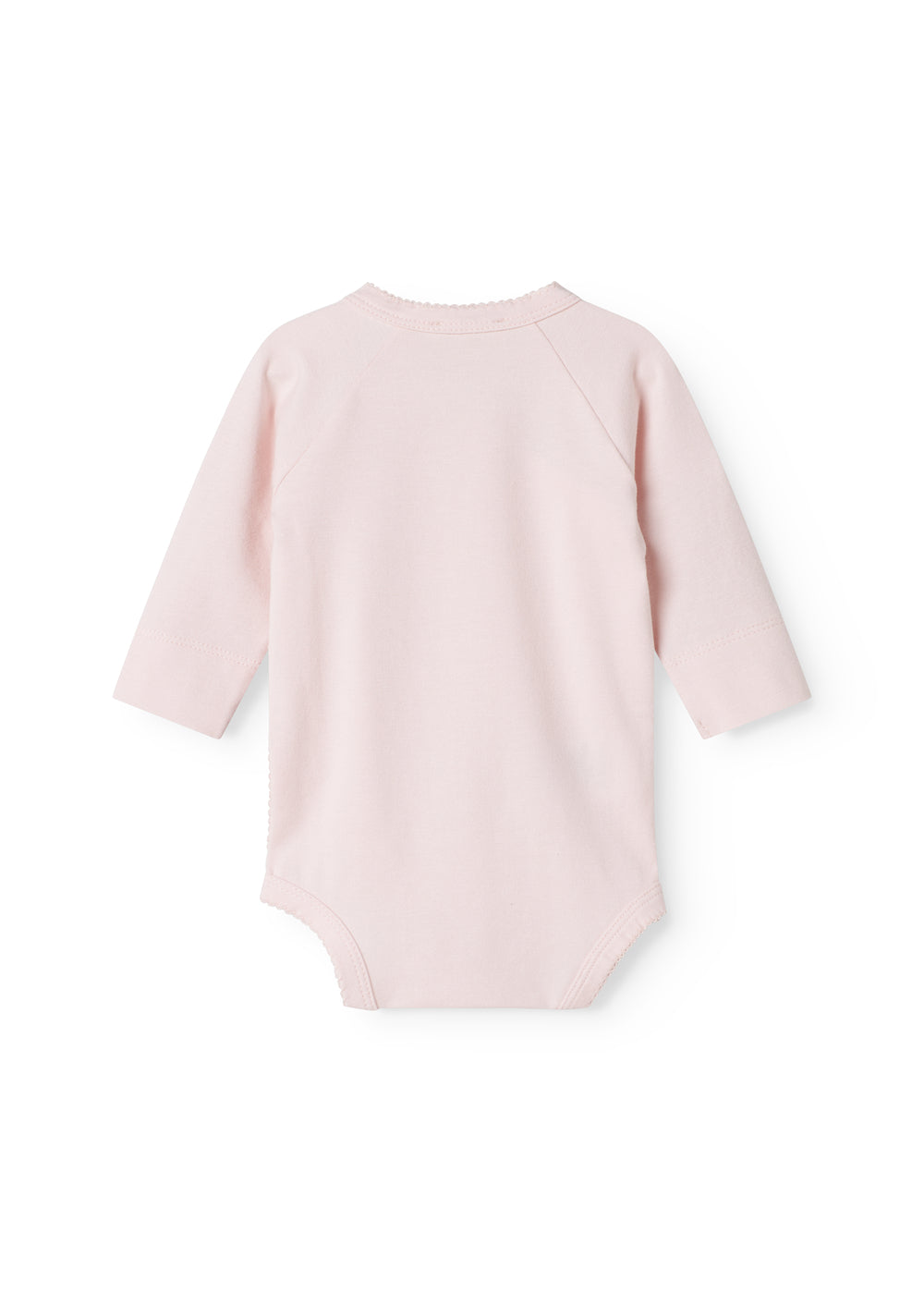 Long-sleeved bodystocking for newborns with wrap-around closure.