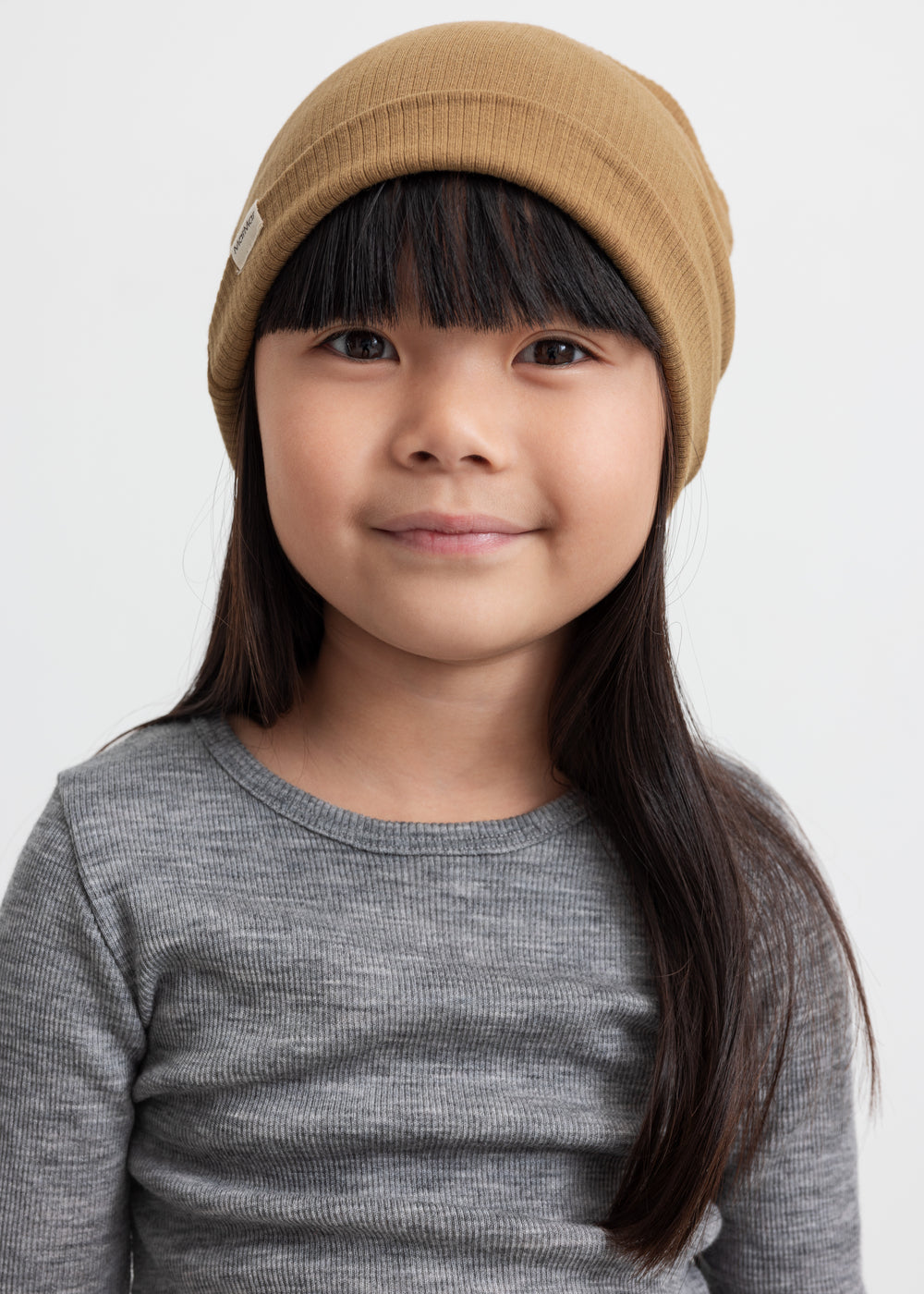 Simple and cute modal hat for children. The hat is ribbed, soft, stretchy and comfortable to wear.